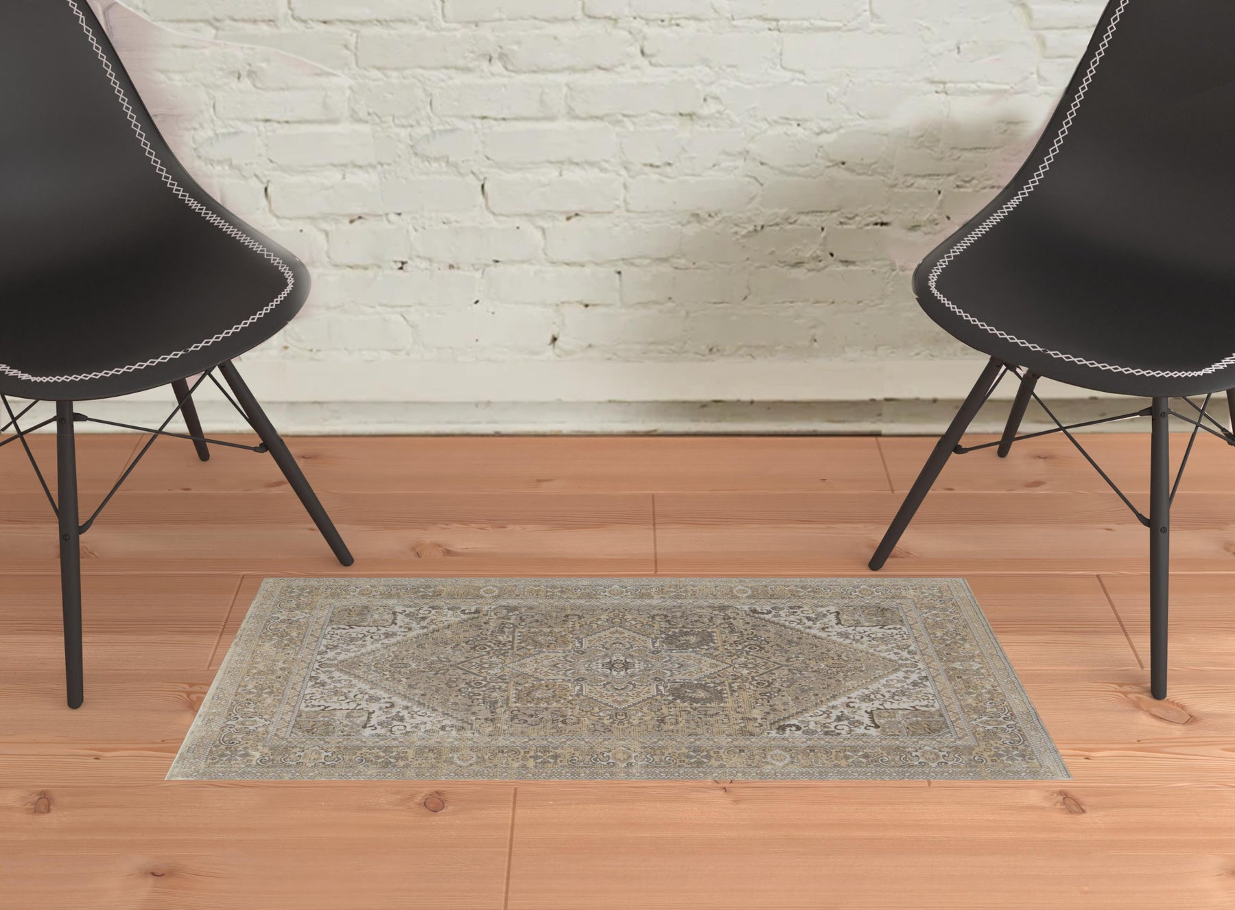 Add some artistry to your room with this 2' x 3' brown ivory and tan floral power loom distressed area rug. This rectangle shaped rug features a floral design in brown ivory and tan to give it visual interest. A classic shape marries with good looking design for your space Made in Turkey, this rug offers high quality combined with good looking designer sensibilities. Place this area rug against a hardwood or tile floor and it will enliven your living space with style and sophistication. 0.39" H x 24" W x 36" D