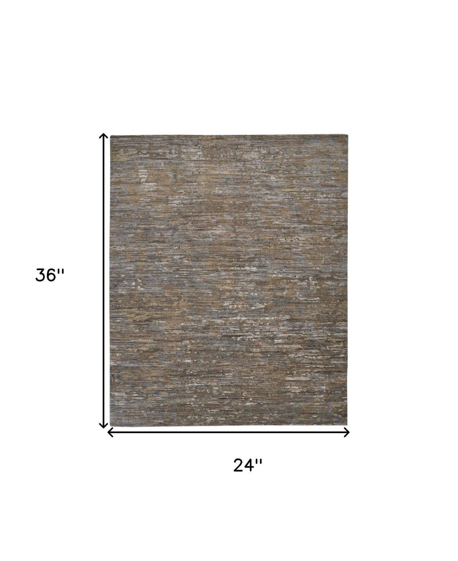 This 2-foot x 3-foot brown and ivory wool abstract hand knotted area rug, is a great way to add warmth to a room. This rectangle shaped rug features a abstract design in brown and ivory to give it visual interest. A classic shape marries with good looking design for your space crafted by skilled artisans, this hand knotted rug is genuine and unique. No two will be exactly alike. 24-inch H x 36-inch W x 0.39-inch D