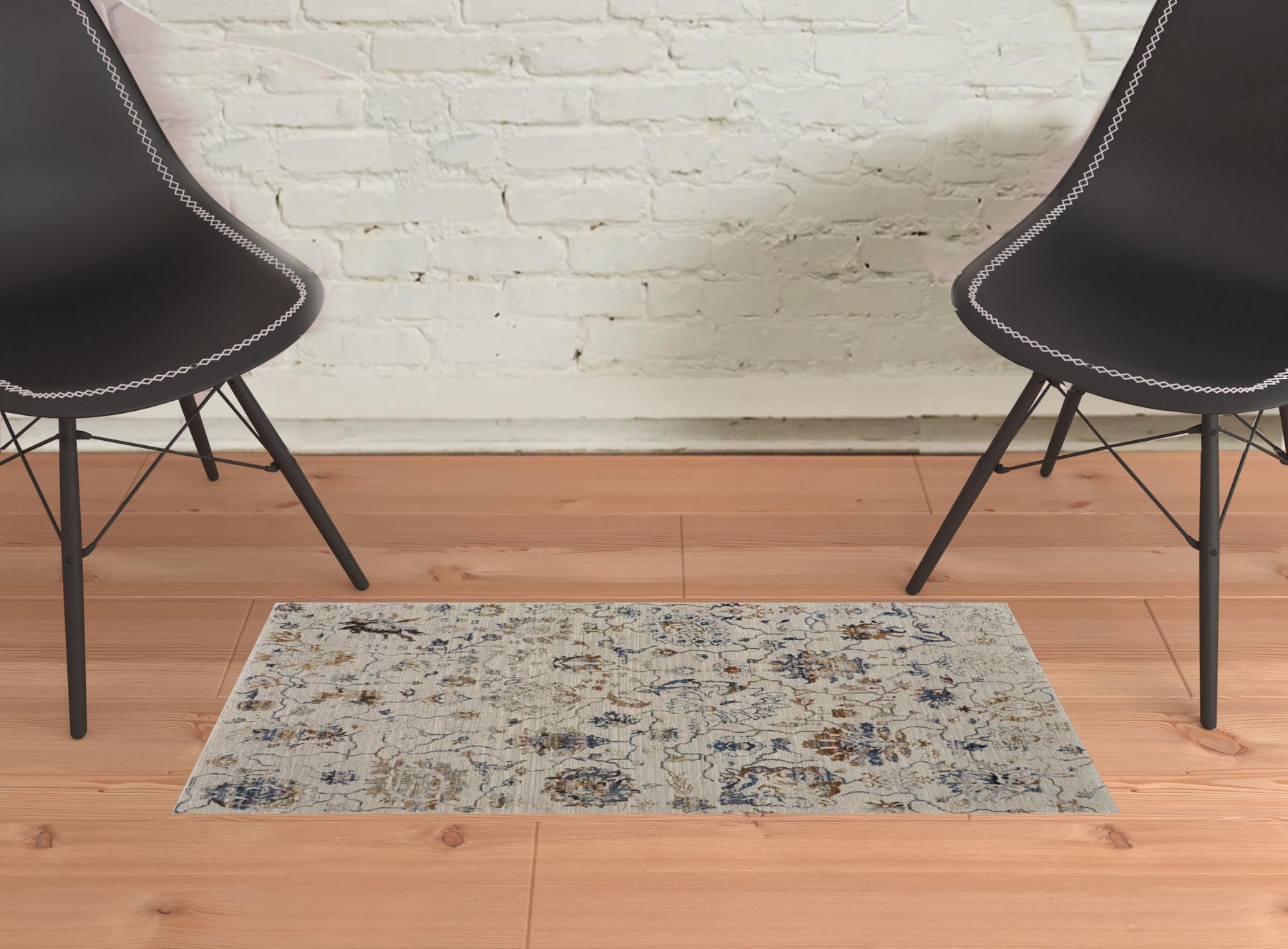 Home Outfitters 2' X 3' Gray and Ivory Abstract Hand Woven Worn Faded Area Rug