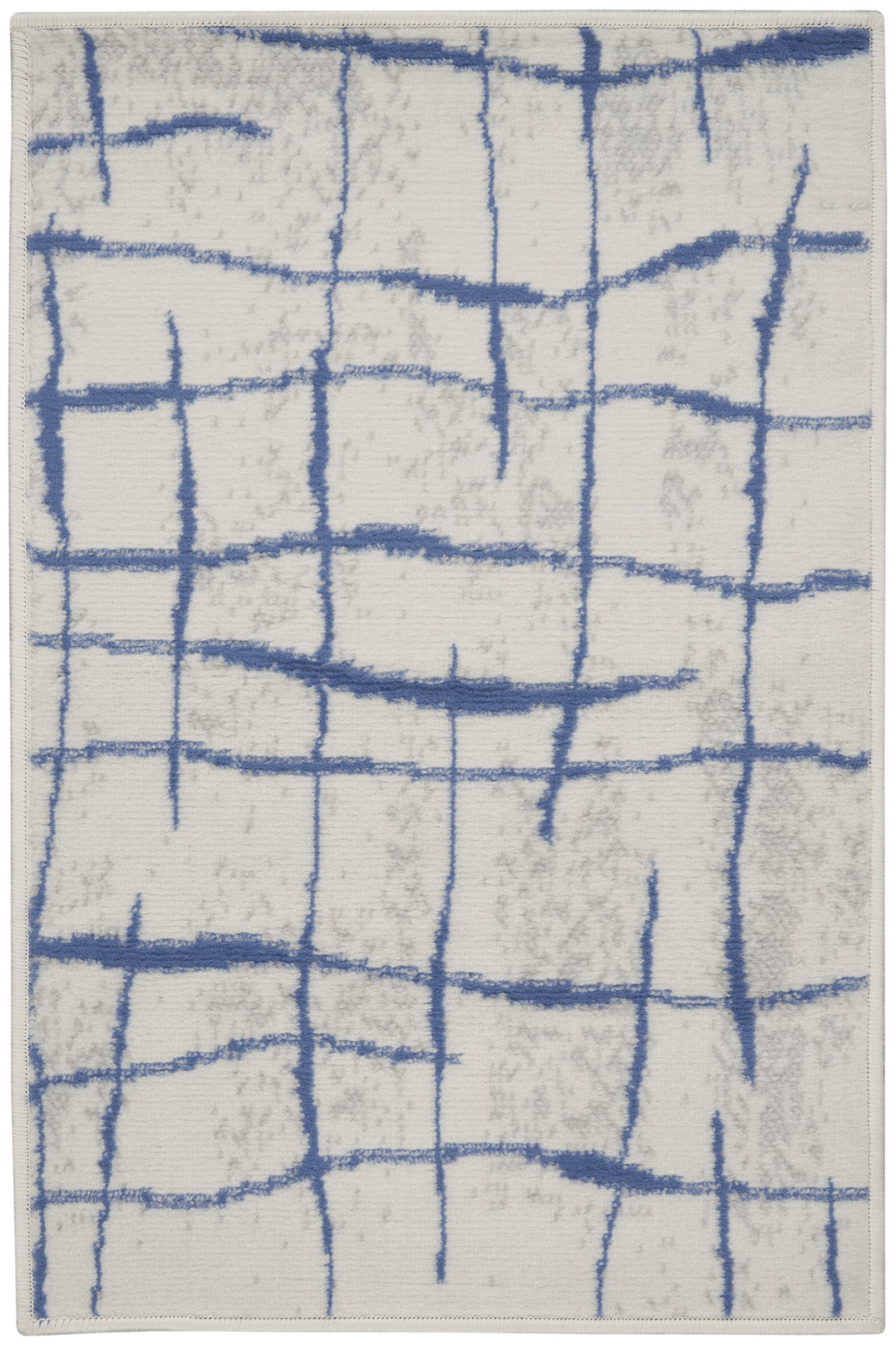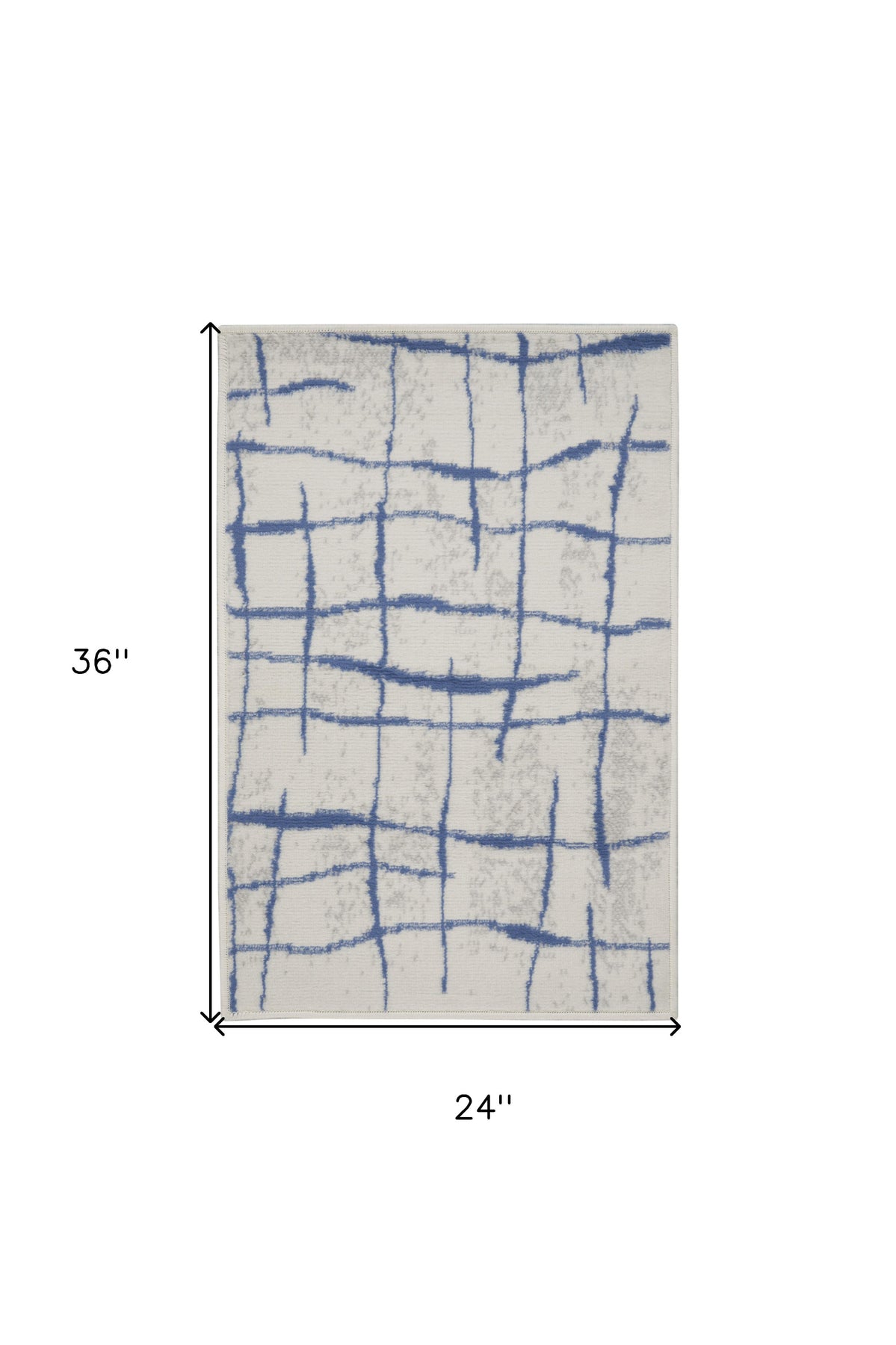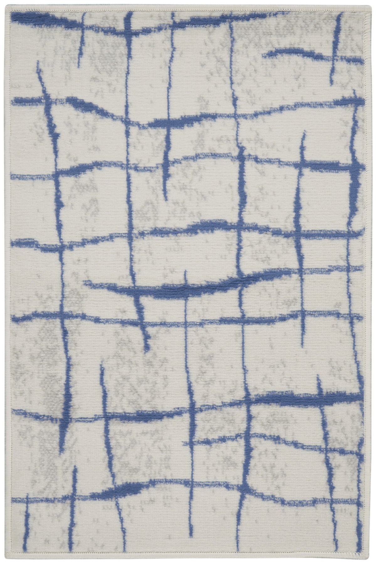 Add great coloration and comfortable texture to your space with this 2-foot x 3-foot ivory and blue abstract distressed area rug. Ideal for spaces with kids and pets, this rug is stain resistant to help repel dirt and spilled liquids. Built to last, this rug crafted from polypropylene fibers is known for its durability and long lasting appeal. Rugs are a great way to showcase your style, hide imperfections, warm your home and reduce noise. This smaller sized, modern styled rug is just what you need for your walkway, bedside, in front of door, cabinet, refrigerator, or chair. 24-inch h x 36-inch w x 0.39-inch d.