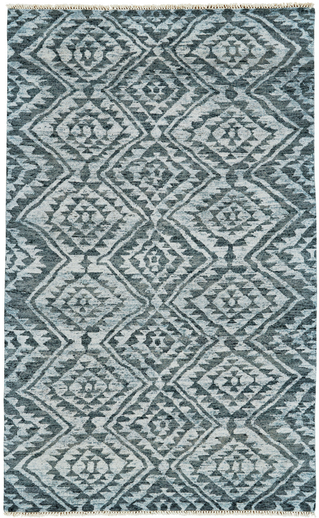 This 2-foot x 3-foot gray and blue wool southwestern hand knotted area rug, is a great way to add warmth to a room. Crafted by skilled artisans, this hand knotted rug is genuine and unique. No two will be exactly alike. This rectangle shaped rug features a southwestern design that will add a functional and decorative accent to your space. Ideal for spaces with kids and pets, this rug is stain resistant to help repel dirt and spilled liquids. This smaller sized rug is just what you need for your walkway, or in front of door, cabinet, refrigerator, or chair. 24-inch h x 36-inch w x 0.39-inch d