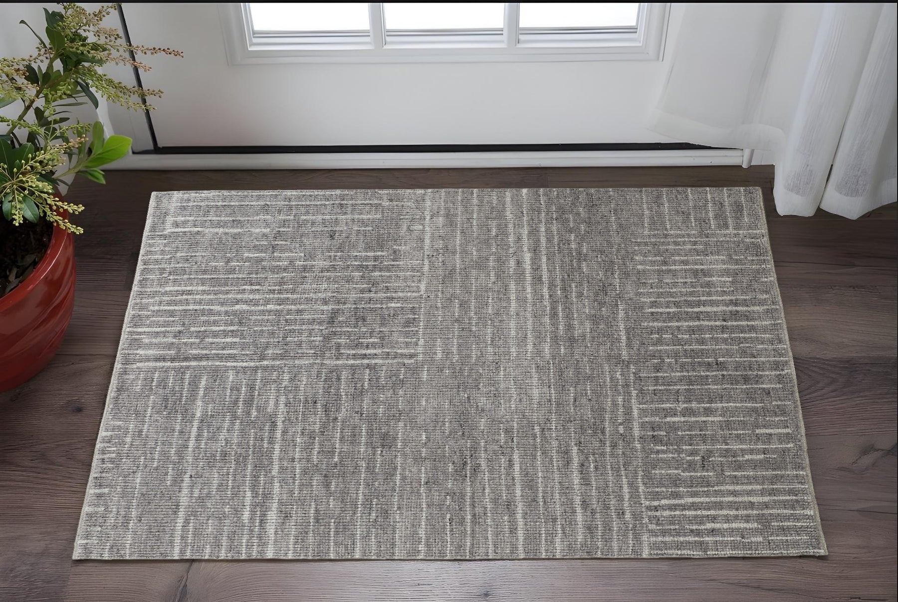 Add great coloration and comfortable texture to your space with this 2-foot x 3-foot gray and ivory wool checkered hand knotted worn faded area rug. This rectangle shaped rug features a checkered design in gray and ivory to give it visual interest. A classic shape marries with good looking design for your space ideal for spaces with kids and pets, this rug is stain resistant to help repel stains and spilled liquids. Crafted by skilled artisans, this hand knotted rug is genuine and unique. No two will be exactly alike. Area rugs help to give warmth and sense of home to your space. 24-inch H x 36-inch W x 0.39-inch D