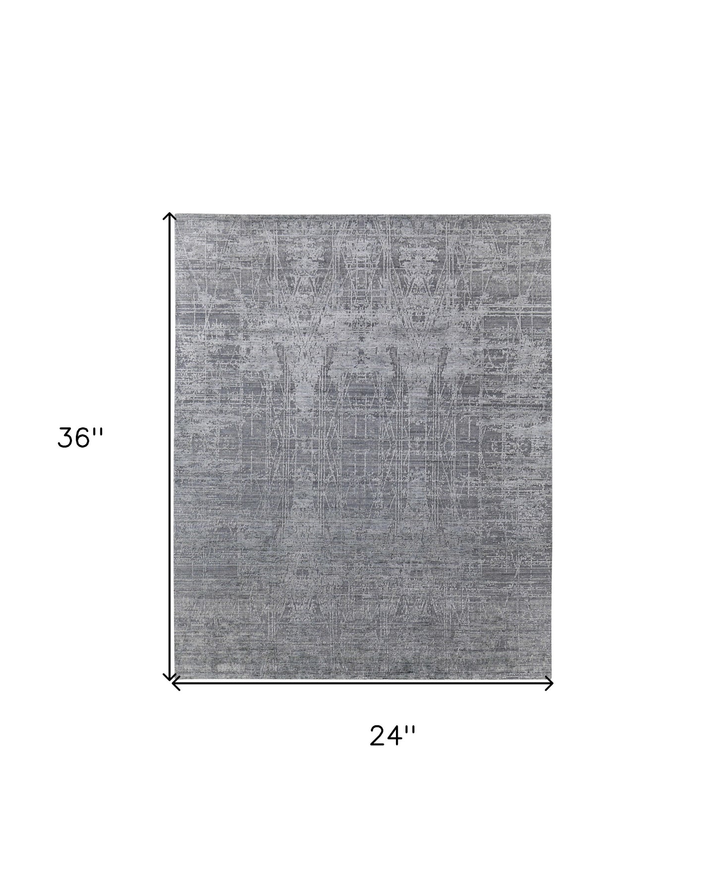 Set an inviting tone in your space with this 2-foot x 3-foot gray and silver abstract hand woven worn faded area rug. This rectangle shaped rug features a abstract design in gray and silver to give it visual interest. A classic shape marries with good looking design for your space crafted by skilled artisans, this hand woven rug is genuine and unique. No two will be exactly alike. Place this area rug against a hardwood or tile floor and it will enliven your living space with style and sophistication. 24-inch H x 36-inch W x 0.39-inch D
