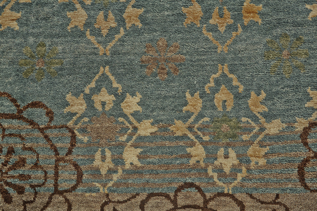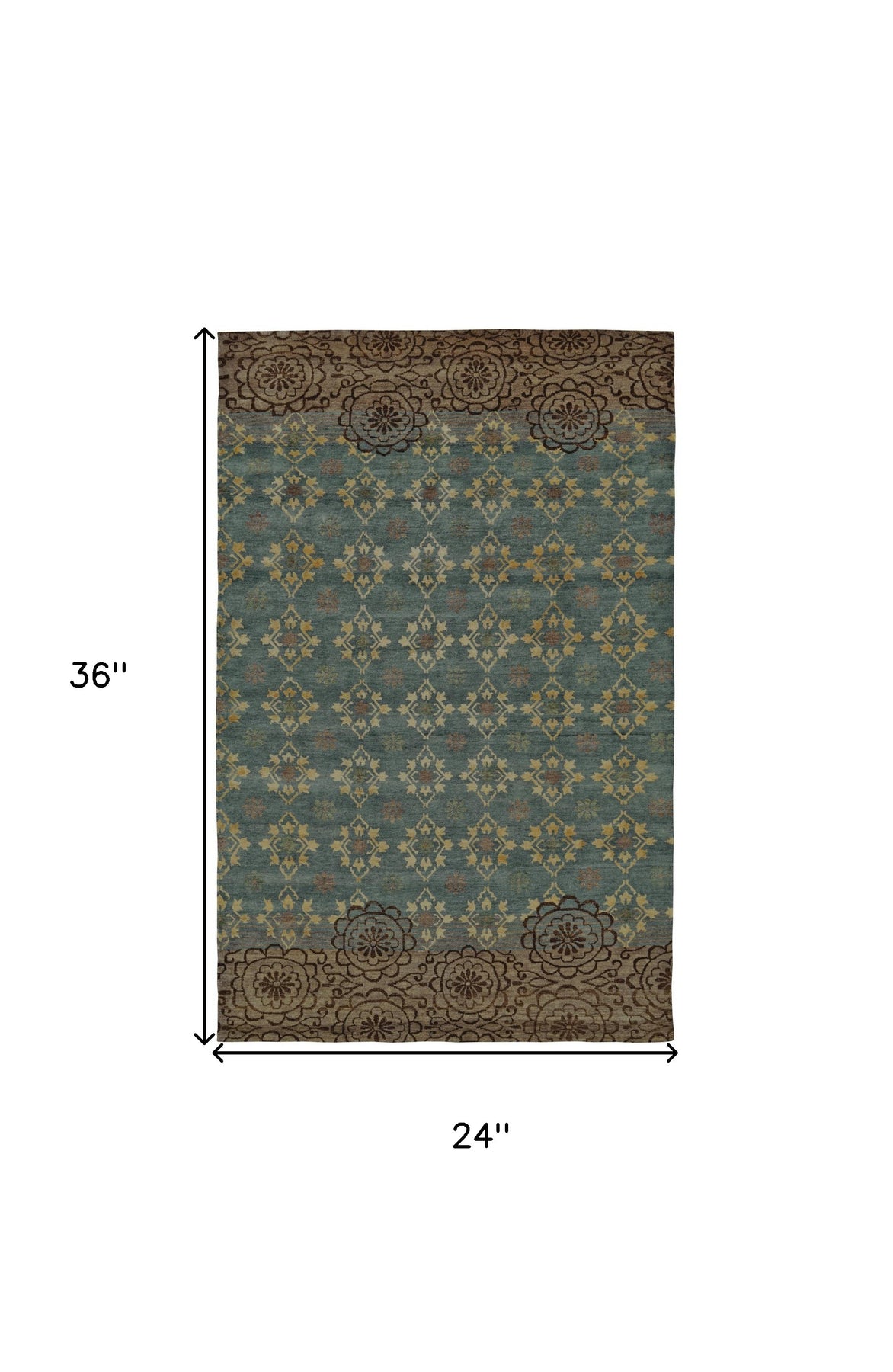 This 2-foot x 3-foot blue green and brown floral hand knotted area rug, is a great way to add warmth to a room. Crafted by skilled artisans, this hand knotted rug is genuine and unique. No two will be exactly alike. Crafted from wool blend fibers that give this piece premium texture, refinement, and appeal. This rectangle shaped rug features a floral design that will add a functional and decorative accent to your space. This smaller sized rug is just what you need for your walkway, or in front of door, cabinet, refrigerator, or chair. 24-inch h x 36-inch w x 0.39-inch d