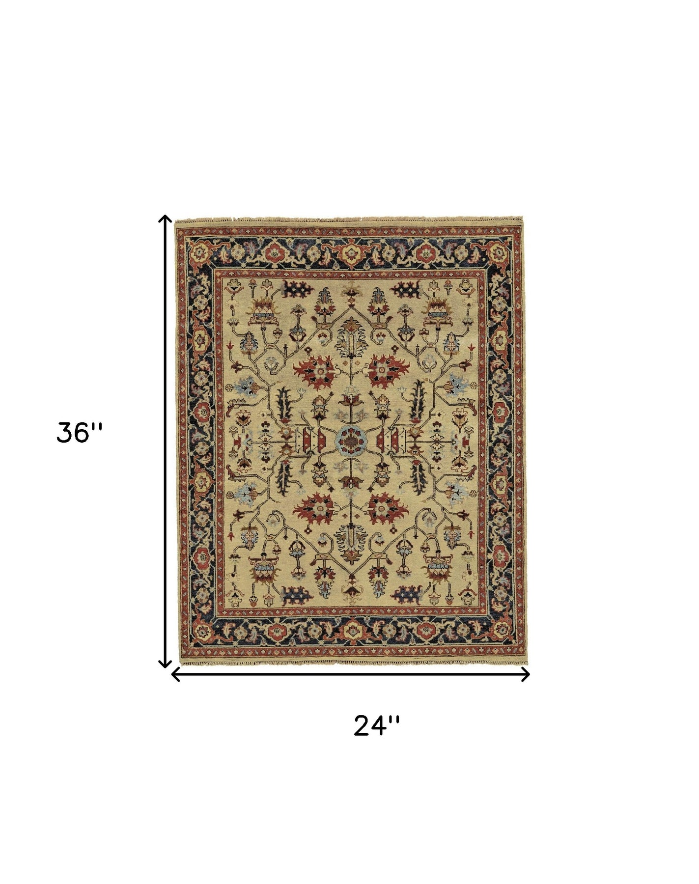 Add some artistry to your room with this 2-foot x 3-foot tan red and gold wool oriental hand knotted area rug. Crafted by skilled artisans, this hand knotted rug is genuine and unique. No two will be exactly alike. This rectangle shaped rug features a oriental design that will add a functional and decorative accent to your space. Ideal for spaces with kids and pets, this rug is stain resistant to help repel dirt and spilled liquids. This smaller sized rug is just what you need for your walkway, or in front of door, cabinet, refrigerator, or chair. 24-inch h x 36-inch w x 0.39-inch d