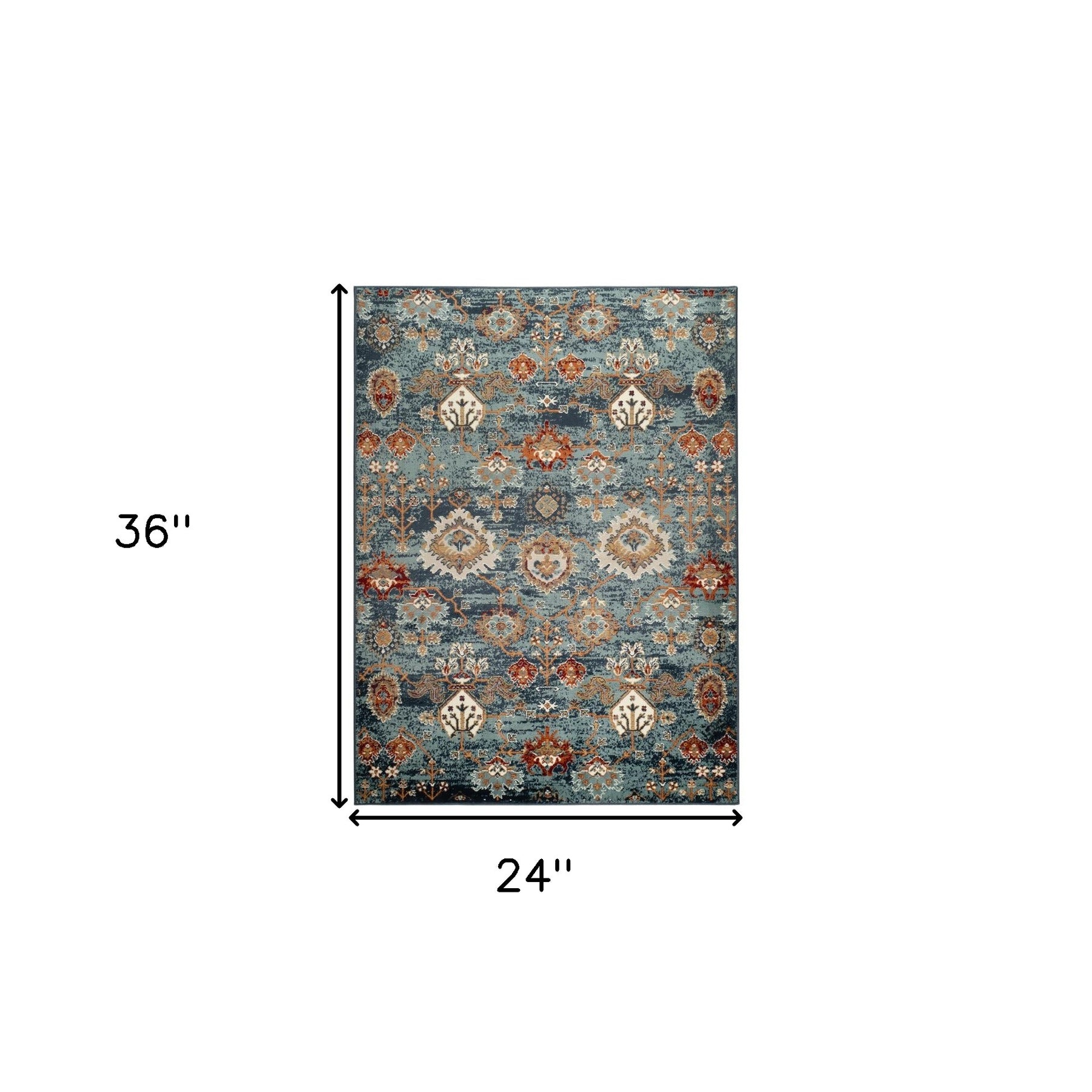 Set an inviting tone in your space with this 2-foot x 3-foot teal rust and orange oriental power loom area rug. This rectangle shaped rug features a oriental design in teal rust and orange to give it visual interest. A classic shape marries with good looking design for your space ideal for spaces with kids and pets, this rug is stain resistant to help repel stains and spilled liquids. Area rugs help to give warmth and sense of home to your space. 24-inch H x 36-inch W x 0.38-inch D