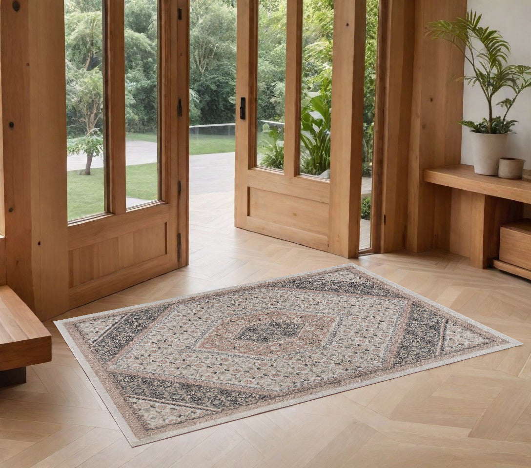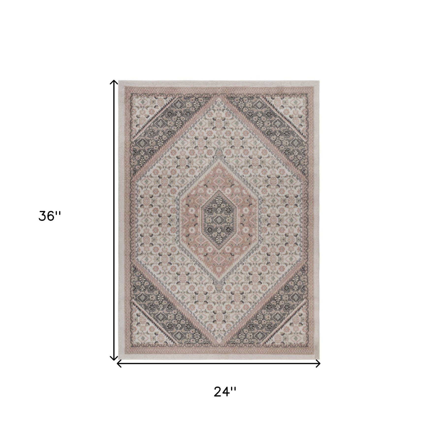Set an inviting tone in your space with this 2-foot x 3-foot pink and ivory medallion area rug. This rectangle shaped rug features a medallion design in pink and ivory to give it visual interest. A classic shape marries with good looking design for your space area rugs help to give warmth and sense of home to your space. 24-inch H x 36-inch W x 0.36-inch D