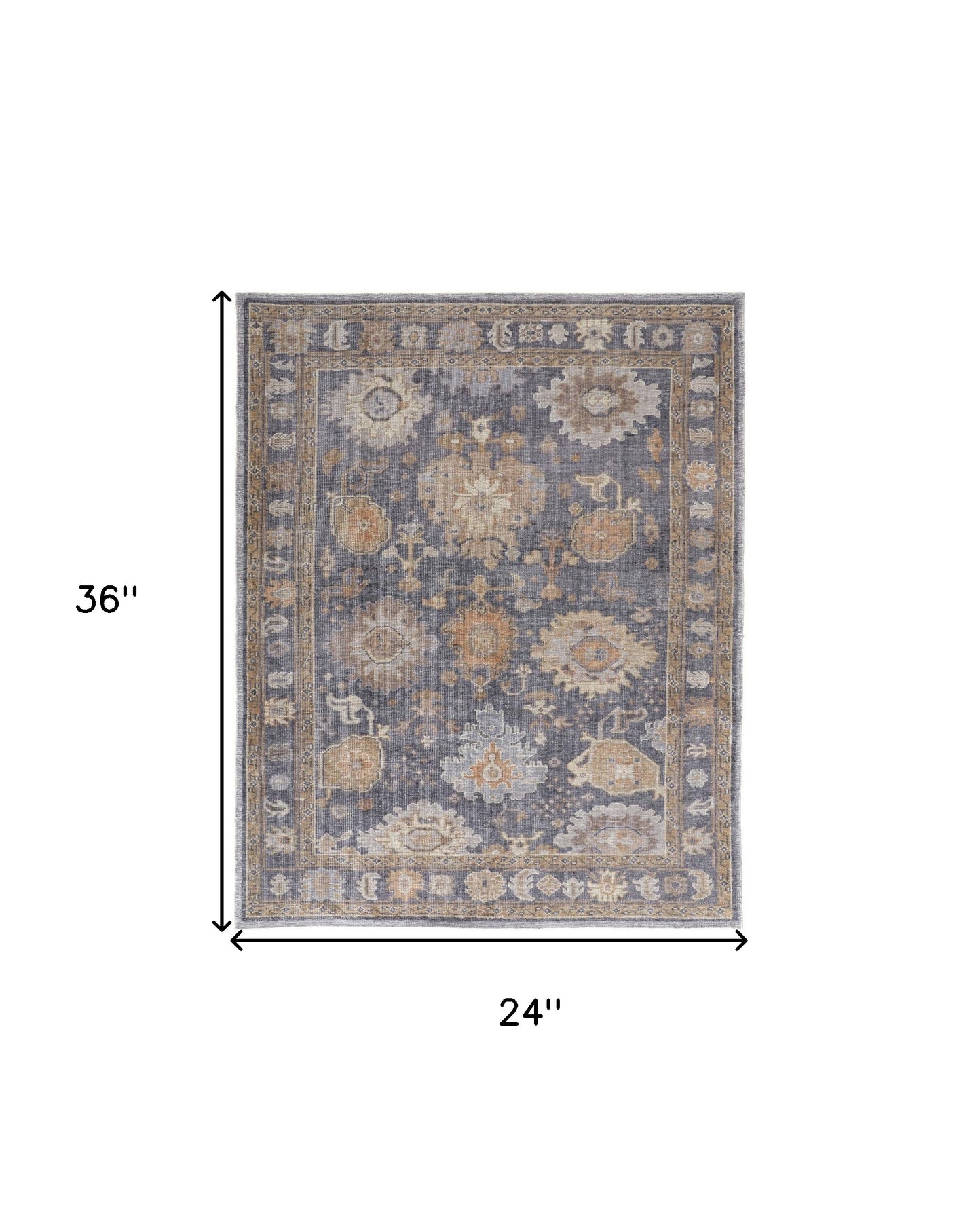 Set an inviting tone in your space with this 2-foot x 3-foot blue gray and tan oriental hand knotted worn faded area rug. Crafted by skilled artisans, this hand knotted rug is genuine and unique. No two will be exactly alike. This rectangle shaped rug features a oriental design that will add a functional and decorative accent to your space. Ideal for spaces with kids and pets, this rug is stain resistant to help repel dirt and spilled liquids. This smaller sized rug is just what you need for your walkway, or in front of door, cabinet, refrigerator, or chair. 24-inch h x 36-inch w x 0.35-inch d