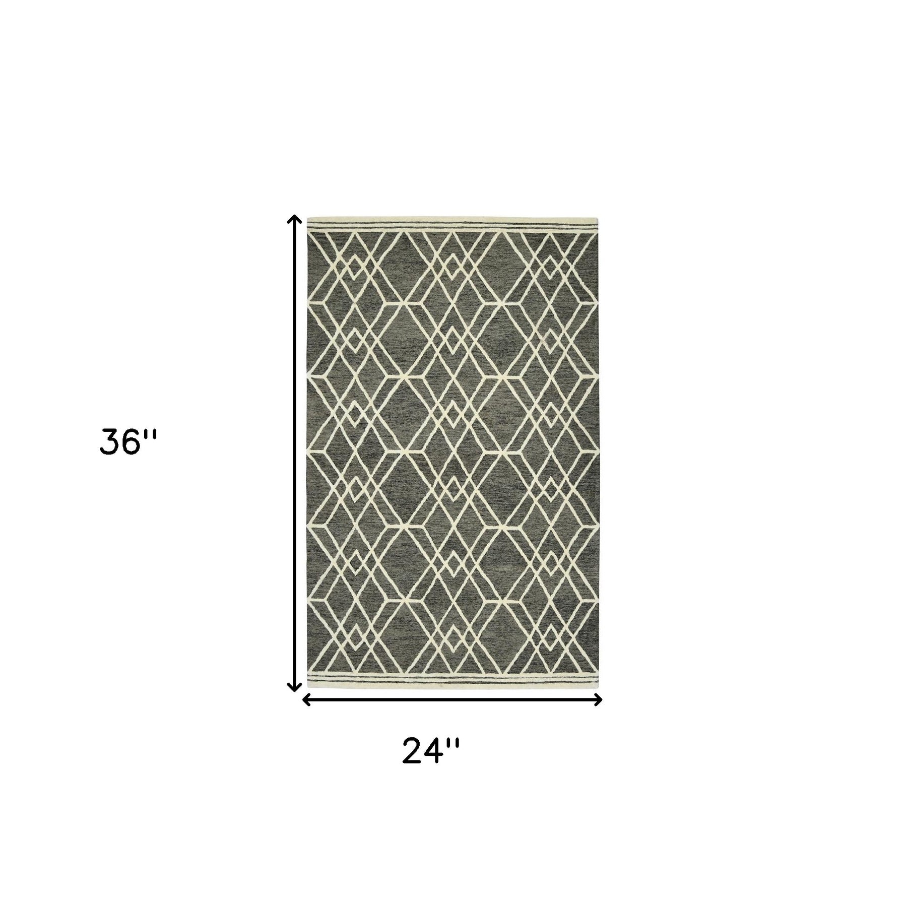 Add some artistry to your room with this 2-foot x 3-foot dark gray and ivory wool geometric hand hooked area rug. Crafted by skilled artisans, this hand hooked rug is genuine and unique. No two will be exactly alike. Rugs are a great way to showcase your style, hide imperfections, warm your home and reduce noise. This smaller sized, lodge styled rug is just what you need for your walkway, bedside, in front of door, cabinet, refrigerator, or chair. 24-inch h x 36-inch w x 0.35-inch d.