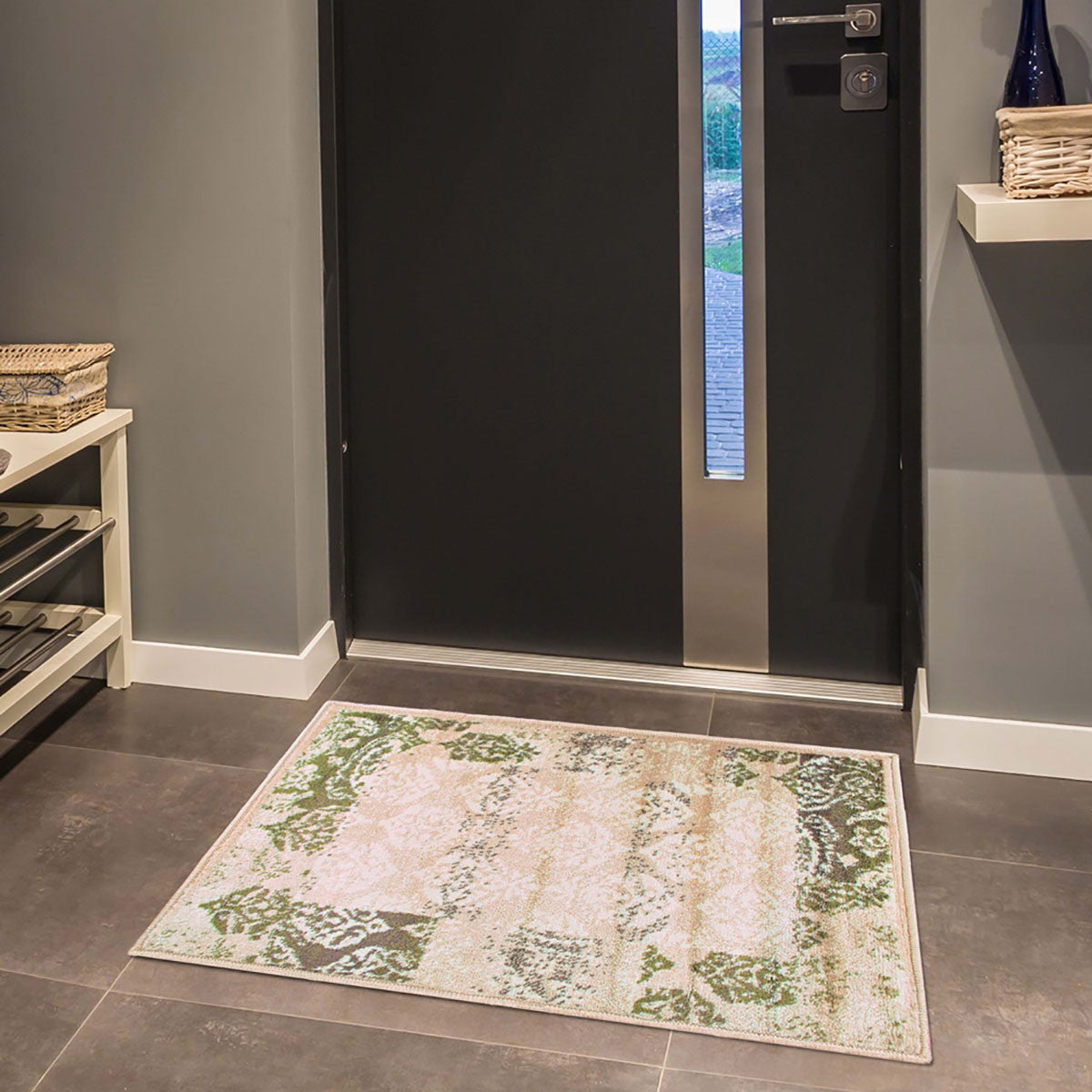 Add great coloration and comfortable texture to your space with this 2' x 3' beige damask power loom distressed stain resistant area rug. This rectangle shaped rug features a damask design in beige to give it visual interest. A classic shape marries with good looking design for your space Made in Turkey, this rug offers high quality combined with good looking designer sensibilities. Ideal for spaces with kids and pets, this rug is stain resistant to help repel stains and spilled liquids. Area Rugs help to give warmth and sense of home to your space. 0.31" H x 24" W x 36" D