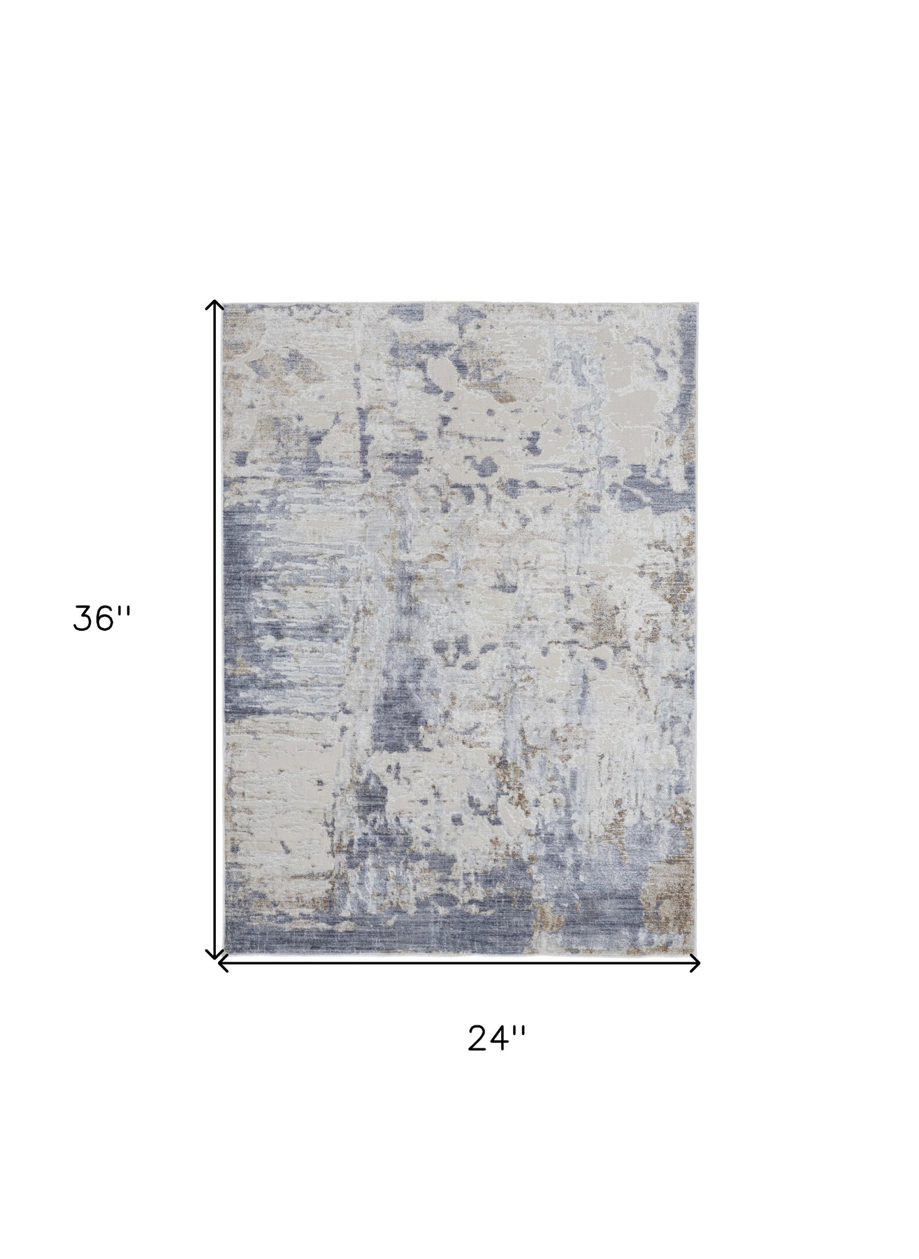 This 2-foot x 3-foot ivory gray and blue abstract power loom worn faded area rug, is a great way to add warmth to a room. This rectangle shaped rug features a abstract design in ivory gray and blue to give it visual interest. A classic shape marries with good looking design for your space ideal for spaces with kids and pets, this rug is stain resistant to help repel stains and spilled liquids. Area rugs help to give warmth and sense of home to your space. 24-inch H x 36-inch W x 0.28-inch D