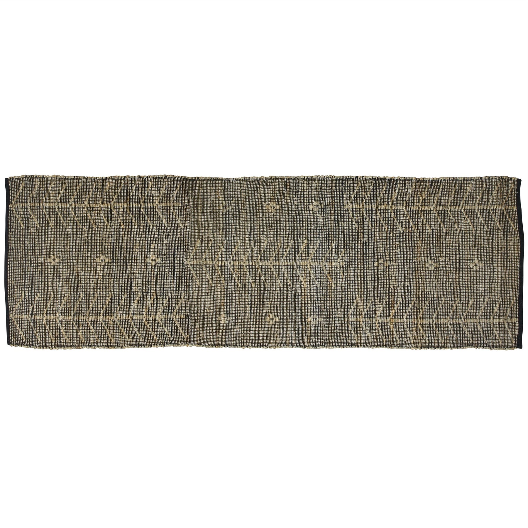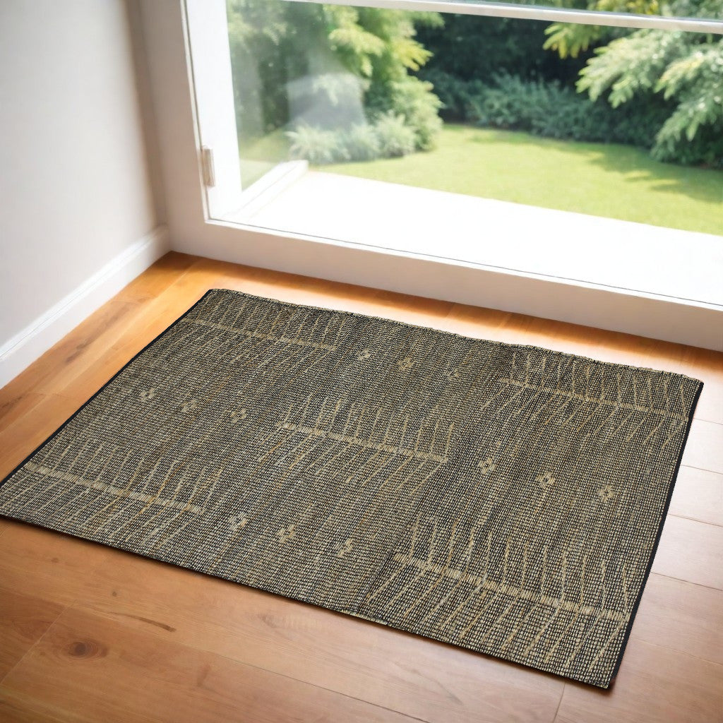 Punctuate the old-world aesthetics into your home with this Beige Distressed Tribal Scatter Rug that induces an ancient vibe with a modern flair. Flaunting a classic color palette, this rug features a distressed black backdrop with engraved fishlike hieroglyph patterns for a tribal touch. Ideal for indoor use, this rug is woven in hemp and cotton that makes it super soft and easy to clean while being durable enough o stand up to areas with high foot traffic. Emanating a sense of old-world nomadic style infused with modern trends, this scatter rug will be a great accent to blend in with both traditional and modern interiors without being too loud. 0.25Ó x 36Ó x 24Ó