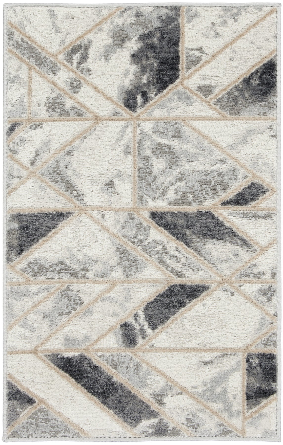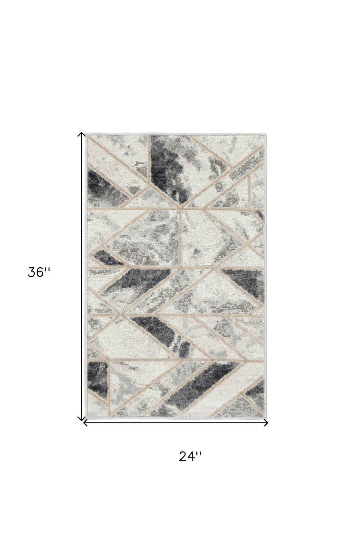 Set an inviting tone in your space with this 2-foot x 3-foot ivory and gray geometric non skid area rug. Ideal for spaces with kids and pets, this rug is stain resistant to help repel dirt and spilled liquids. Built to last, this rug crafted from polypropylene fibers is known for its durability and long lasting appeal. Rugs are a great way to showcase your style, hide imperfections, warm your home and reduce noise. This smaller sized, modern styled rug is just what you need for your walkway, bedside, in front of door, cabinet, refrigerator, or chair. 24-inch h x 36-inch w x 0.25-inch d