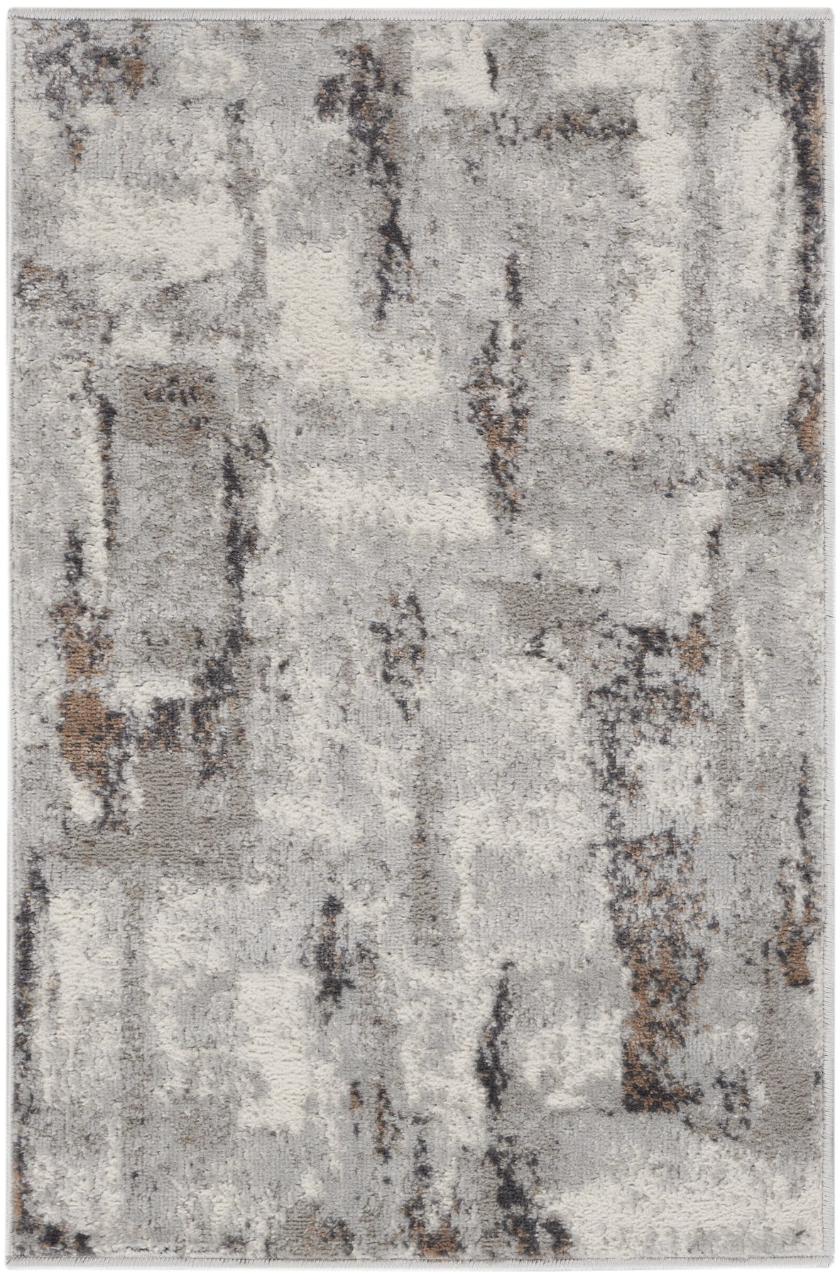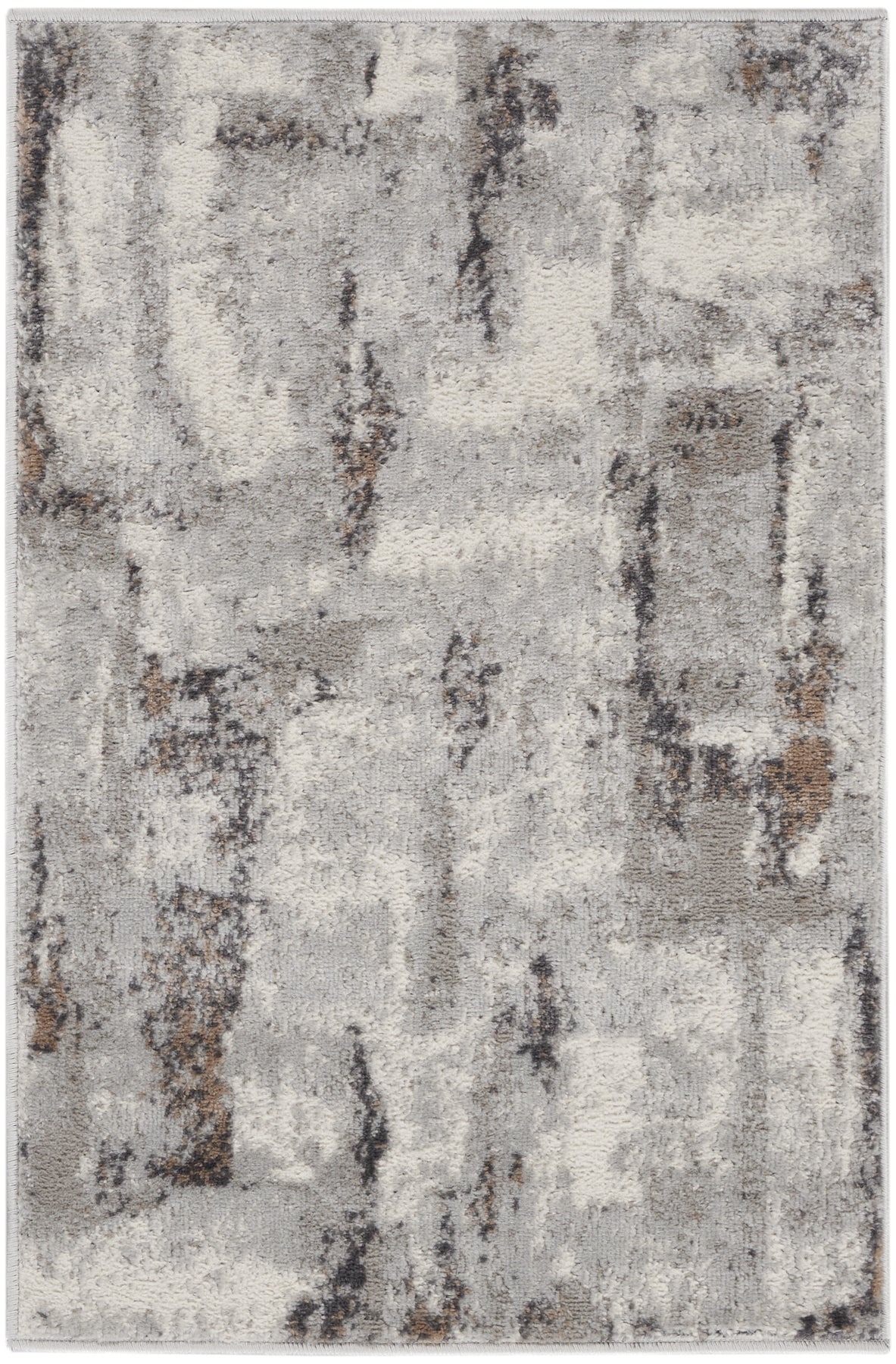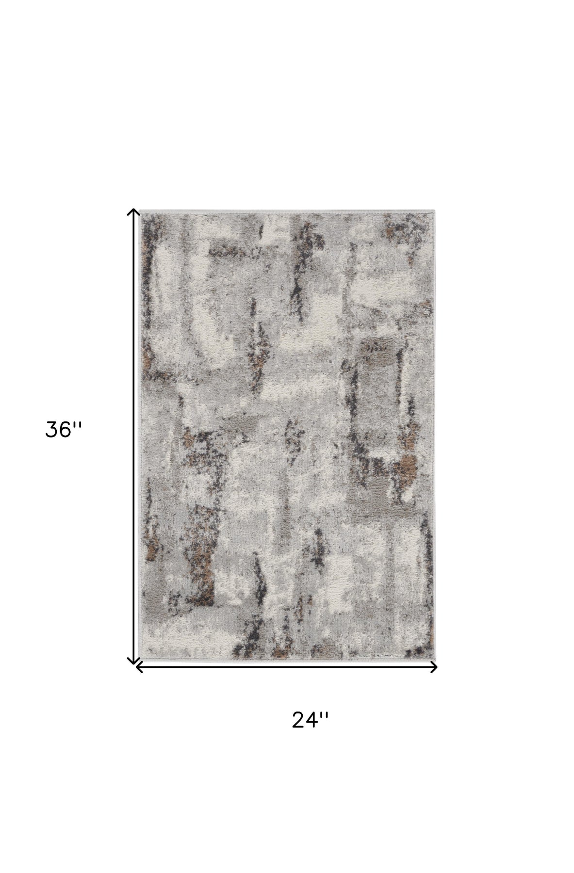 Set an inviting tone in your space with this 2-foot x 3-foot ivory black and gray abstract non skid area rug. Ideal for spaces with kids and pets, this rug is stain resistant to help repel dirt and spilled liquids. Built to last, this rug crafted from polypropylene fibers is known for its durability and long lasting appeal. Rugs are a great way to showcase your style, hide imperfections, warm your home and reduce noise. This smaller sized, modern styled rug is just what you need for your walkway, bedside, in front of door, cabinet, refrigerator, or chair. 24-inch h x 36-inch w x 0.25-inch d