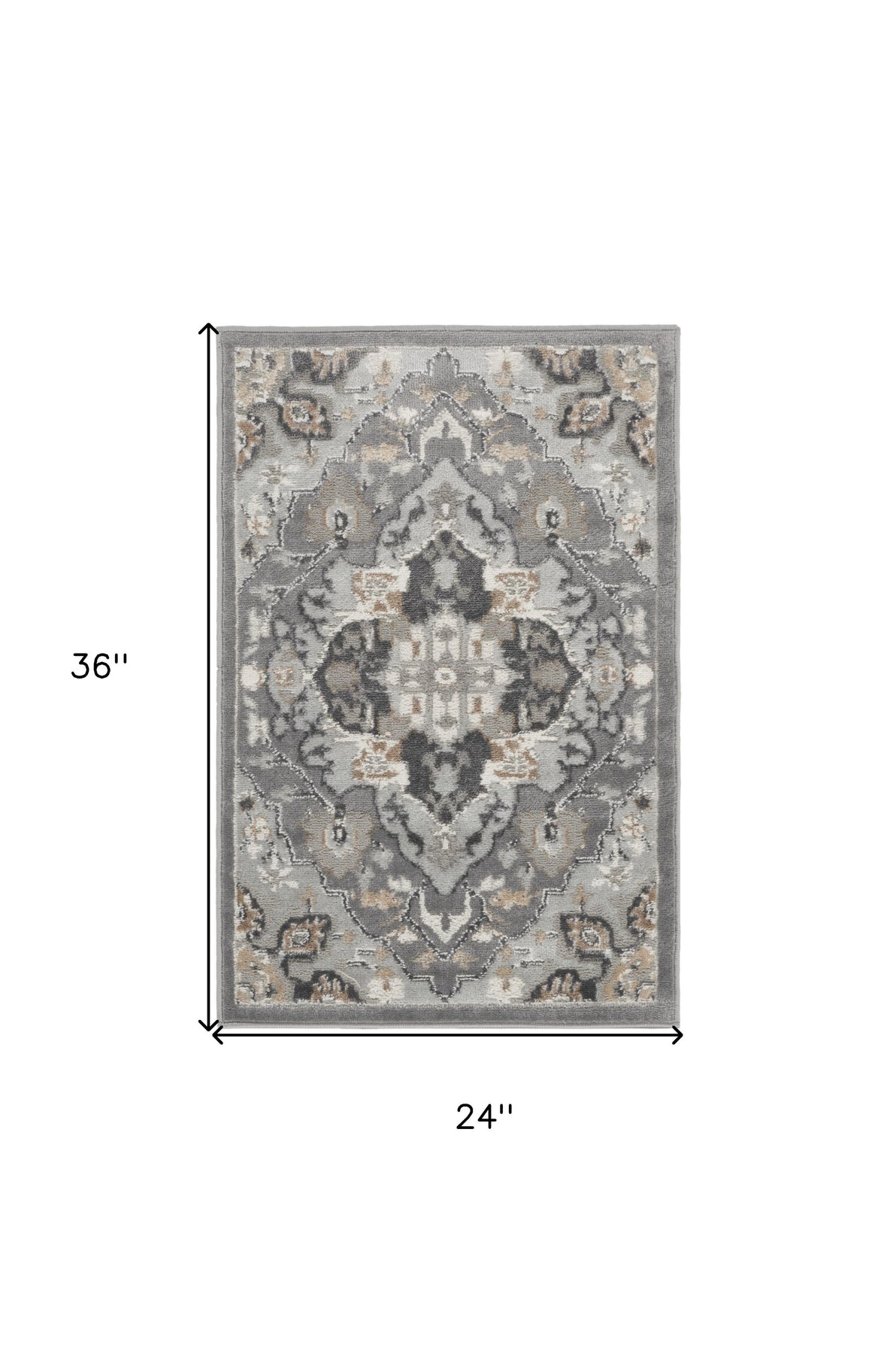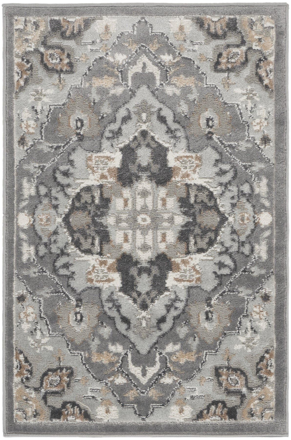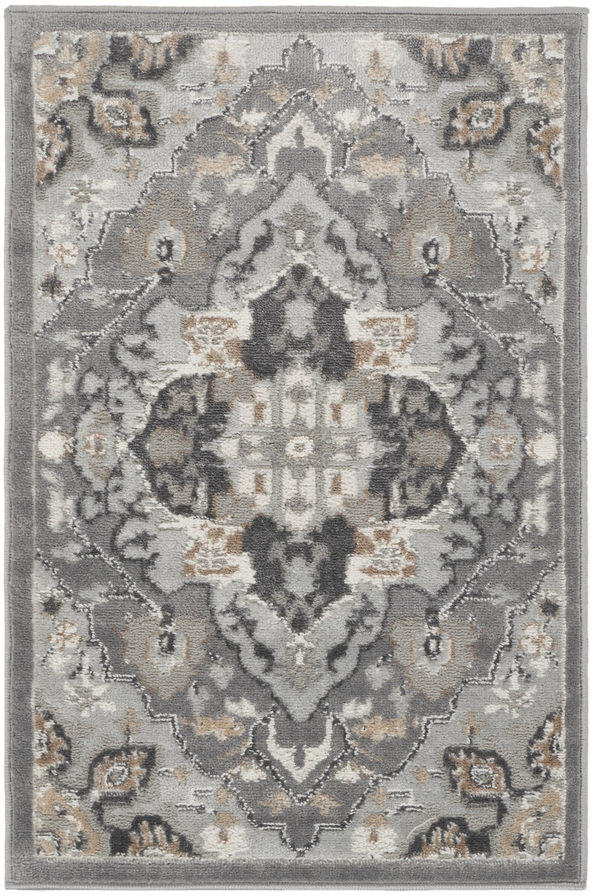 Add great coloration and comfortable texture to your space with this 2-foot x 3-foot black and gray floral non skid area rug. Ideal for spaces with kids and pets, this rug is stain resistant to help repel dirt and spilled liquids. Built to last, this rug crafted from polypropylene fibers is known for its durability and long lasting appeal. Rugs are a great way to showcase your style, hide imperfections, warm your home and reduce noise. This smaller sized, transitional styled rug is just what you need for your walkway, bedside, in front of door, cabinet, refrigerator, or chair. 24-inch h x 36-inch w x 0.25-inch d
