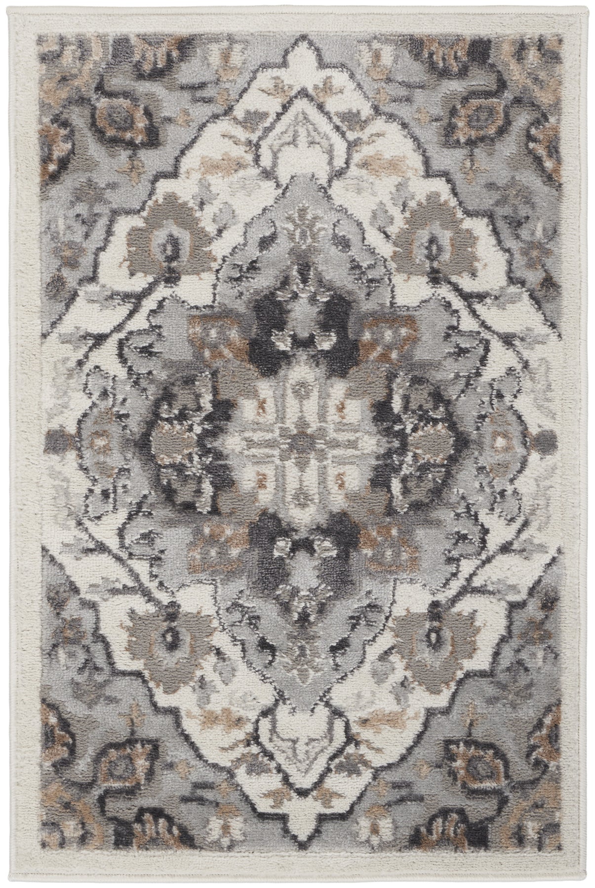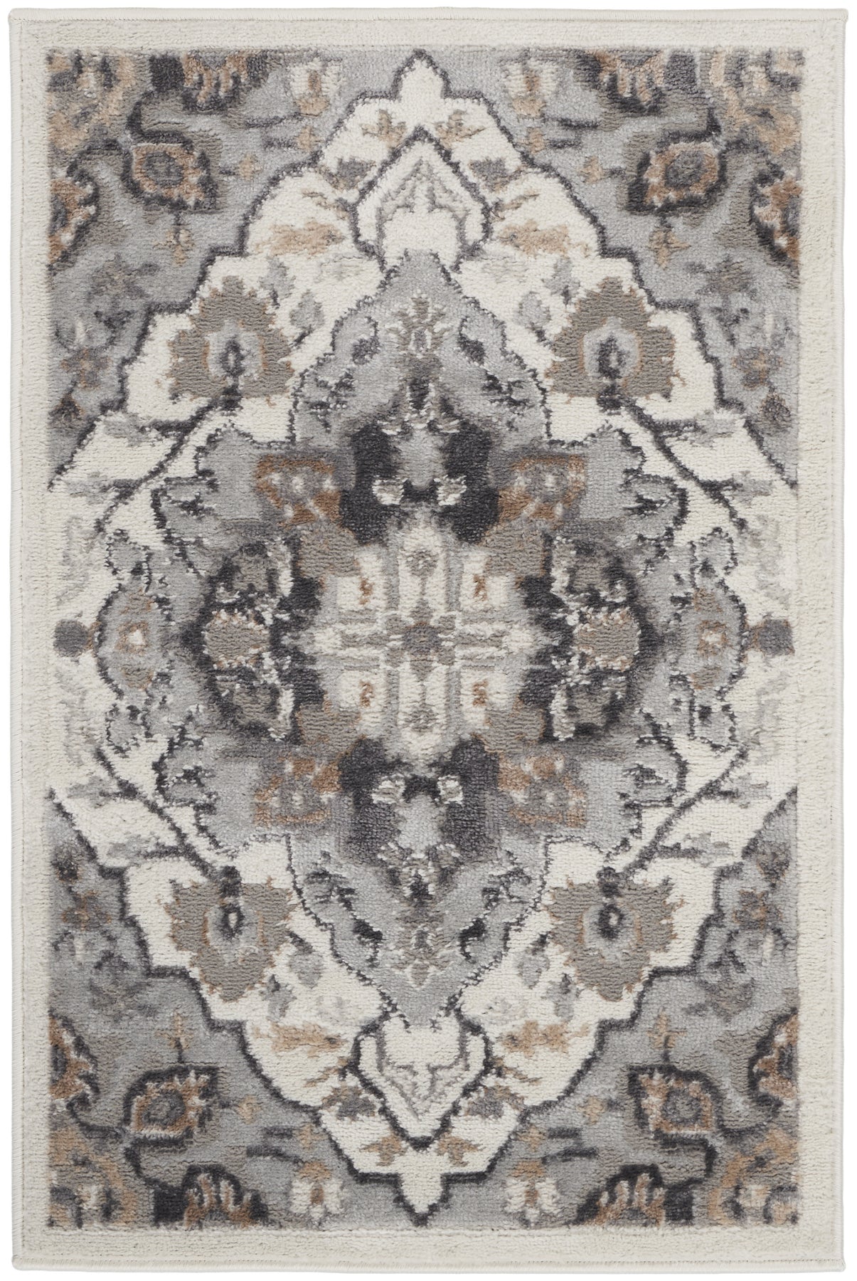 This 2-foot x 3-foot ivory black and gray floral non skid area rug, is a great way to add warmth to a room. Ideal for spaces with kids and pets, this rug is stain resistant to help repel dirt and spilled liquids. Built to last, this rug crafted from polypropylene fibers is known for its durability and long lasting appeal. Rugs are a great way to showcase your style, hide imperfections, warm your home and reduce noise. This smaller sized, transitional styled rug is just what you need for your walkway, bedside, in front of door, cabinet, refrigerator, or chair. 24-inch h x 36-inch w x 0.25-inch d