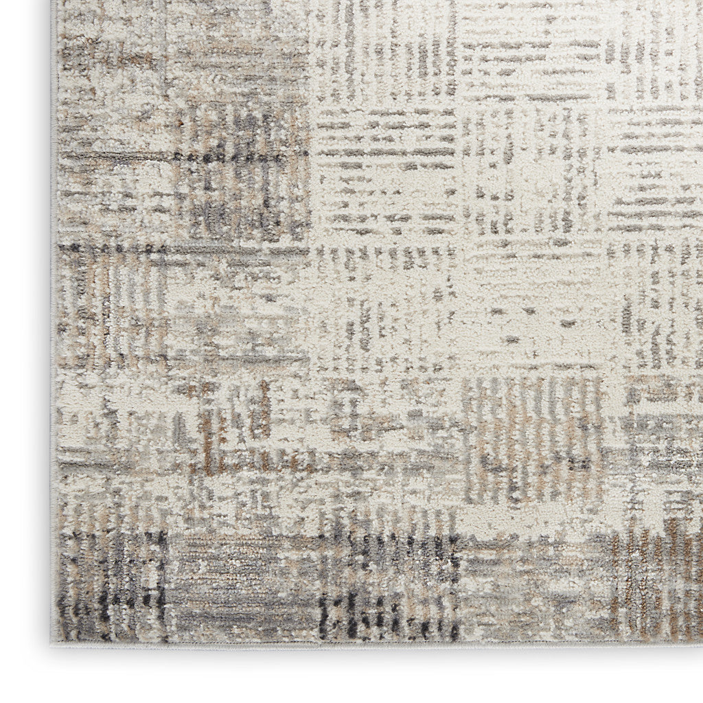 Set an inviting tone in your space with this 2-foot x 3-foot ivory and gray abstract area rug. Ideal for spaces with kids and pets, this rug is stain resistant to help repel dirt and spilled liquids. Built to last, this rug crafted from polypropylene fibers is known for its durability and long lasting appeal. Rugs are a great way to showcase your style, hide imperfections, warm your home and reduce noise. This smaller sized, modern styled rug is just what you need for your walkway, bedside, in front of door, cabinet, refrigerator, or chair. 24-inch h x 36-inch w x 0.25-inch d