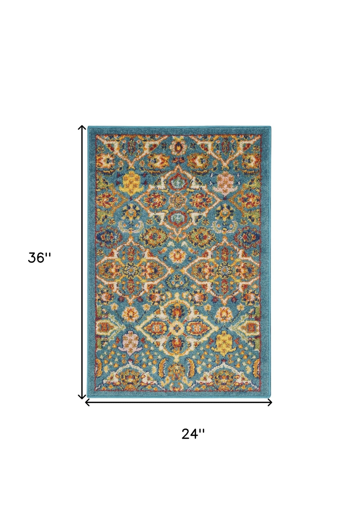 Add some artistry to your room with this 2-foot x 3-foot blue floral power loom area rug. This rectangle shaped rug features a floral design in blue to give it visual interest. A classic shape marries with good looking design for your space. Enhance the durability of this rug by using a rug pad, and keep it looking fresh by vacuuming with no beater bar/rotating brush. Crafted from polypropylene using the power loom technique, this bohemian-style machine-made rug in blue adds an elegant touch to any room. 24-inch H x 36-inch W x 0.25-inch D