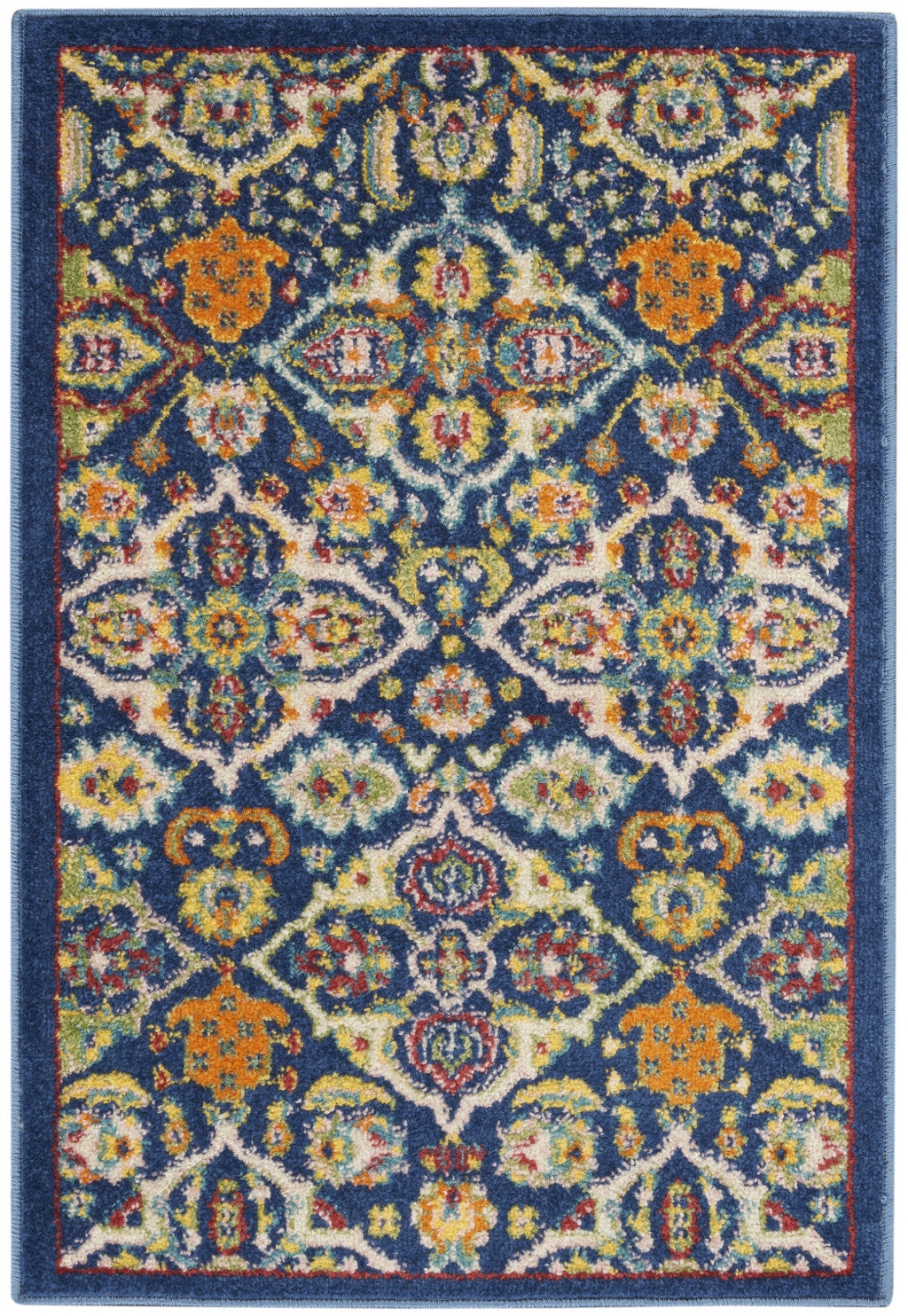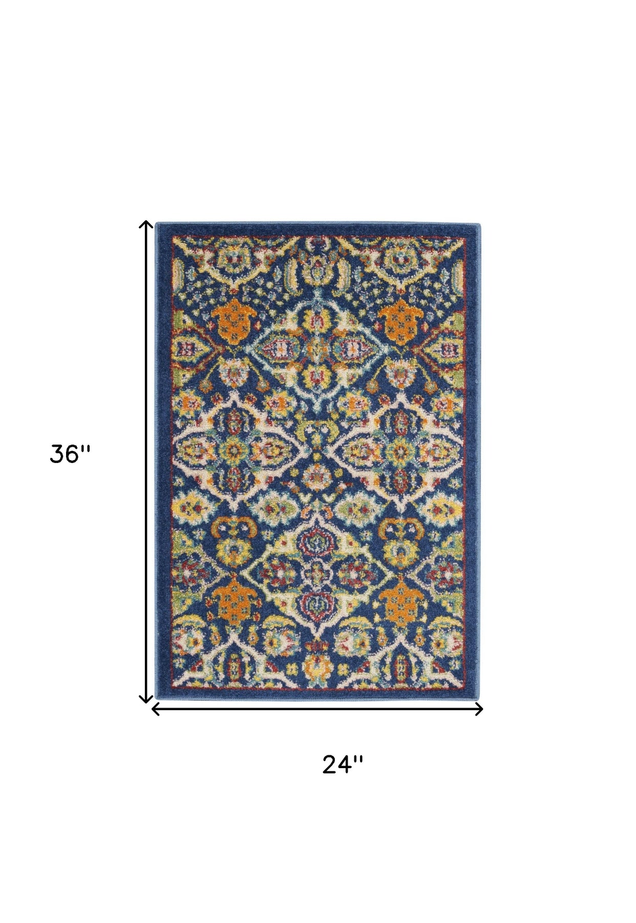 Add great coloration and comfortable texture to your space with this 2-foot x 3-foot blue floral power loom area rug. This rectangle shaped rug features a floral design in blue to give it visual interest. A classic shape marries with good looking design for your space. 24-inch H x 36-inch W x 0.25-inch D