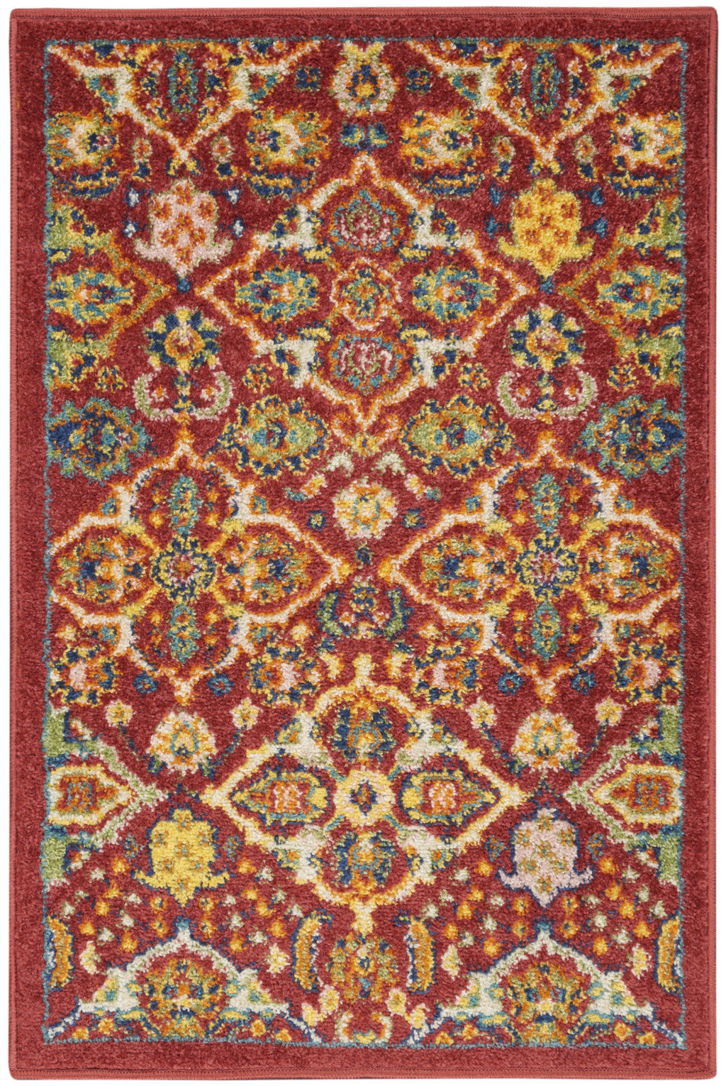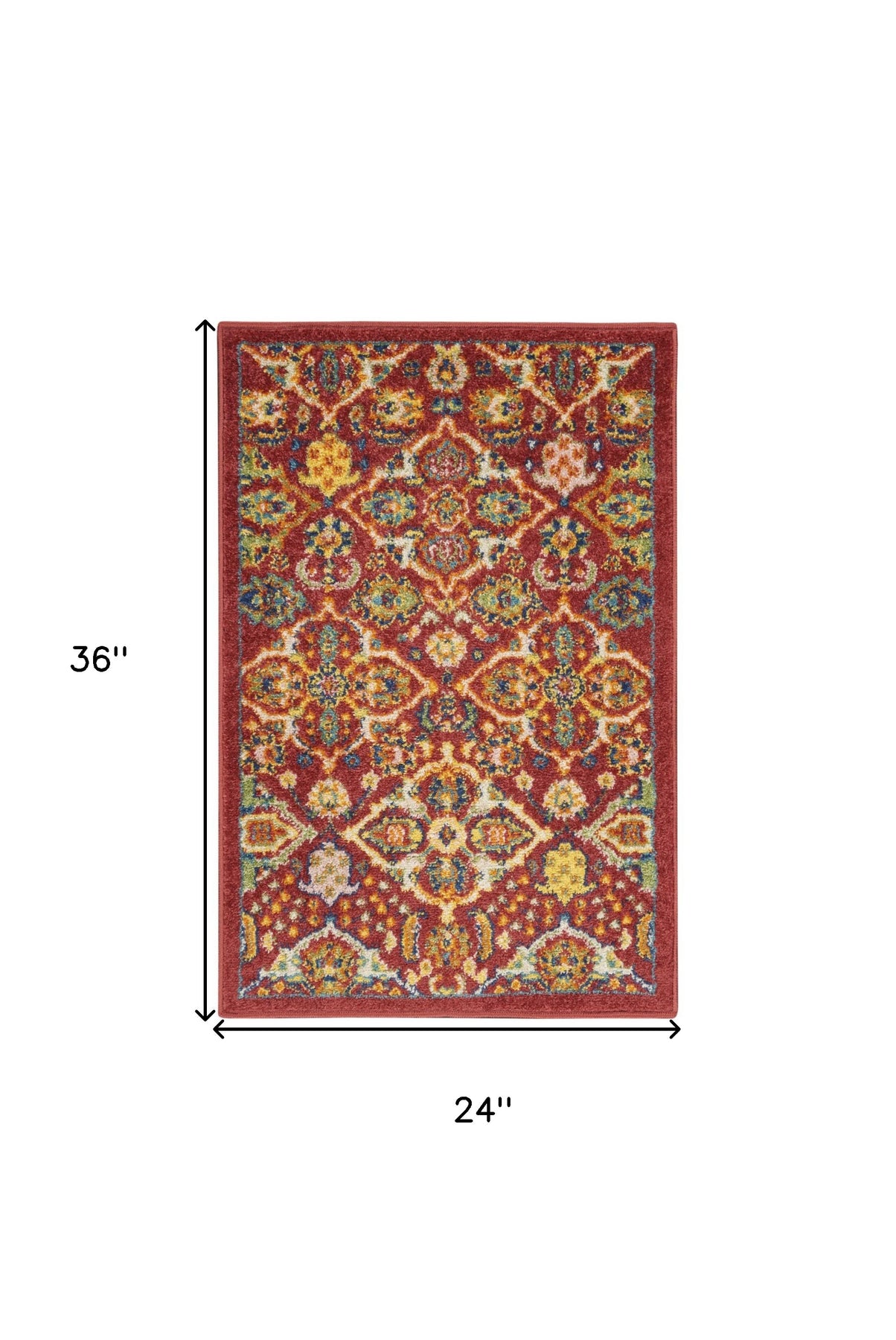 Add a touch of bohemian charm to your space with this 2-foot x 3-foot red floral power loom area rug. Crafted from durable polypropylene with a machine-made construction, this rectangle-shaped rug features a captivating floral design in red. For easy maintenance, vacuum with no beater bar/rotating brush, and consider using a rug pad for added comfort and longevity. Elevate your decor with this stylish piece that combines classic shape and eye-catching design. 24-inch H x 36-inch W x 0.25-inch D