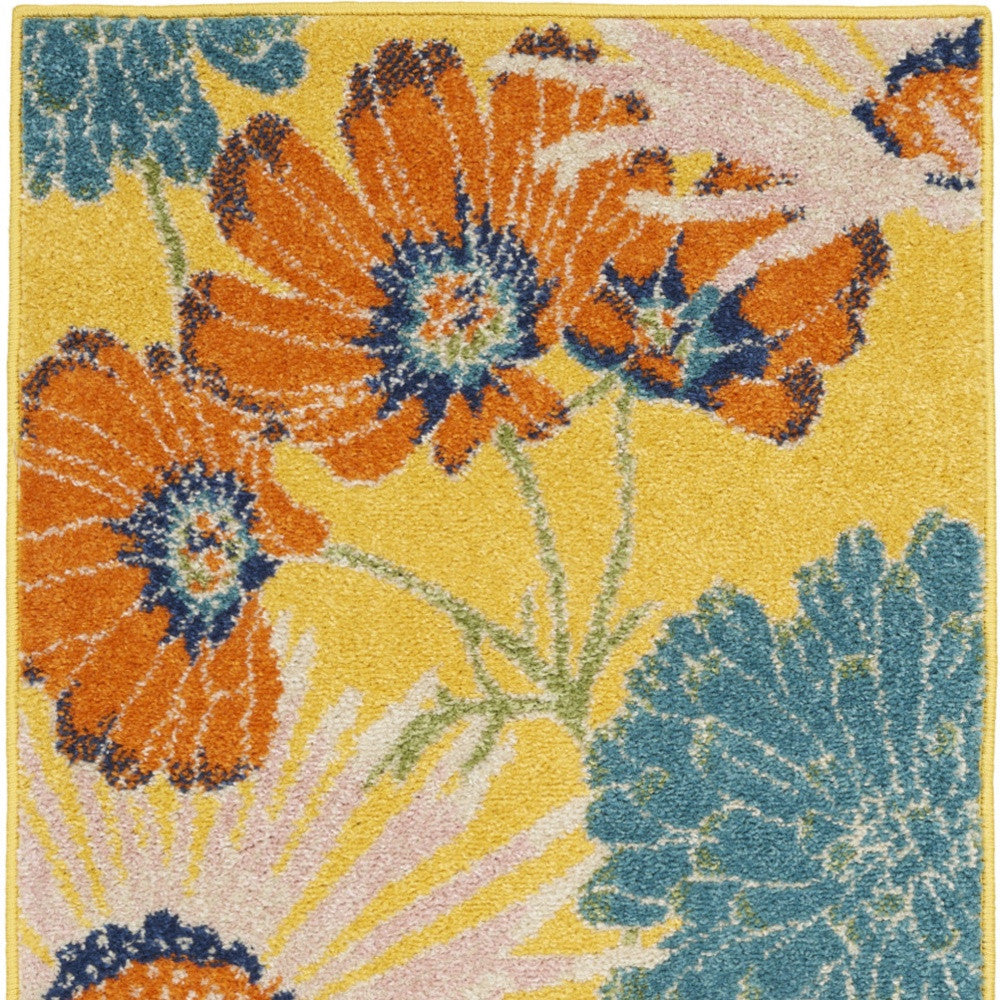 Add great coloration and comfortable texture to your space with this 2-foot x 3-foot yellow floral power loom area rug. This rectangle shaped rug features a floral design in yellow to give it visual interest. A classic shape marries with good looking design for your space. 24-inch H x 36-inch W x 0.25-inch D