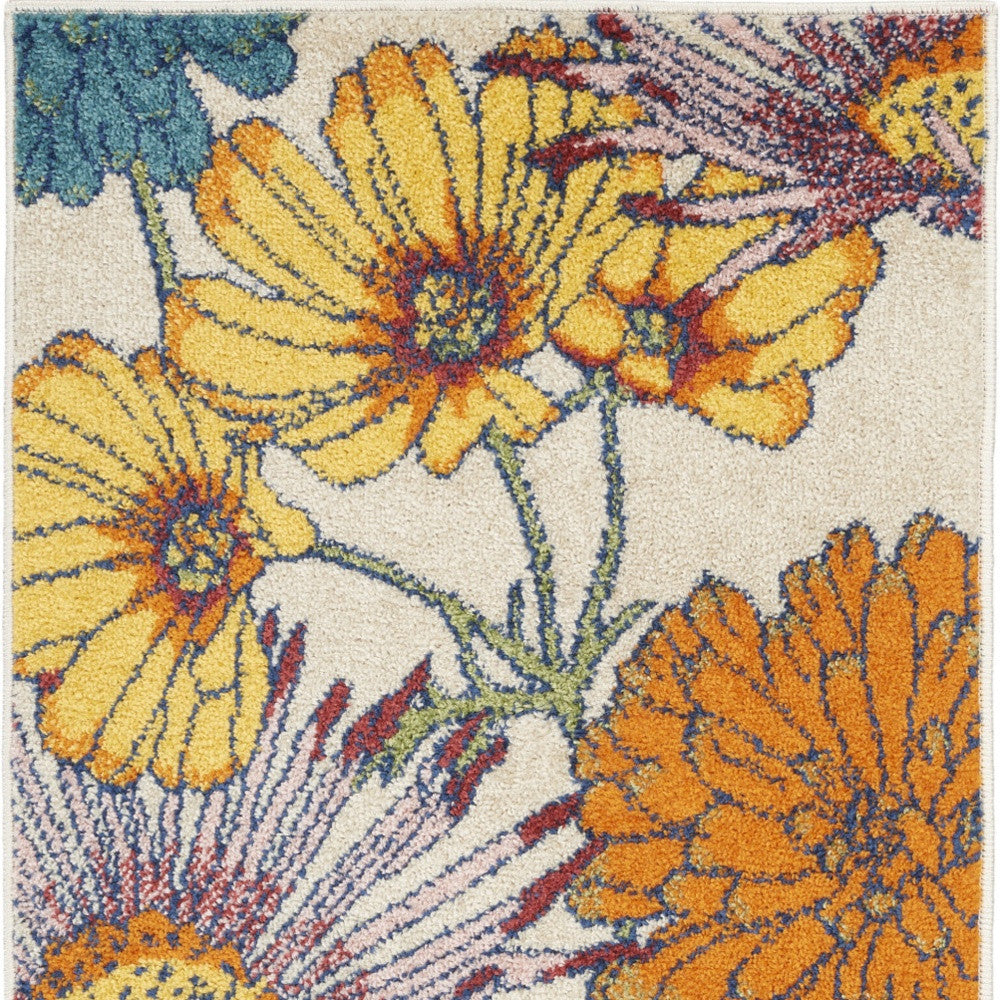 Add some artistry to your room with this 2-foot x 3-foot ivory floral power loom area rug. This rectangle shaped rug features a floral design in ivory to give it visual interest. A classic shape marries with good looking design for your space the coloring of this rug adds a delightfully neutral tone to your home and will easily match with most any decor. 24-inch H x 36-inch W x 0.25-inch D