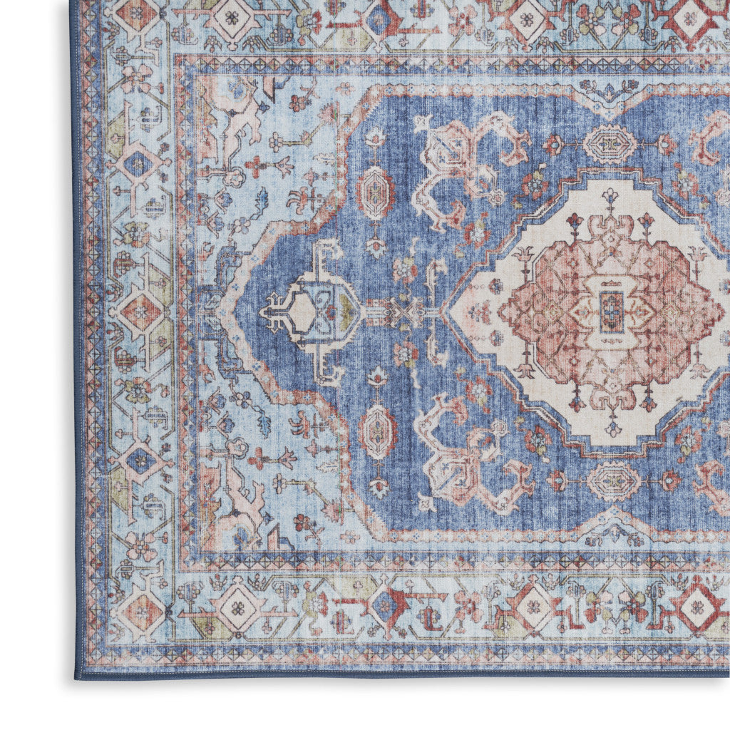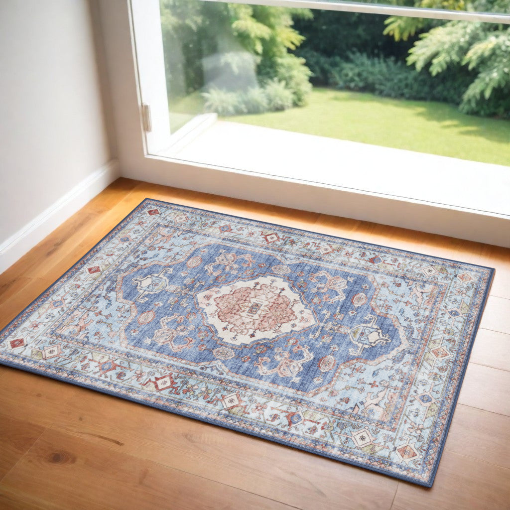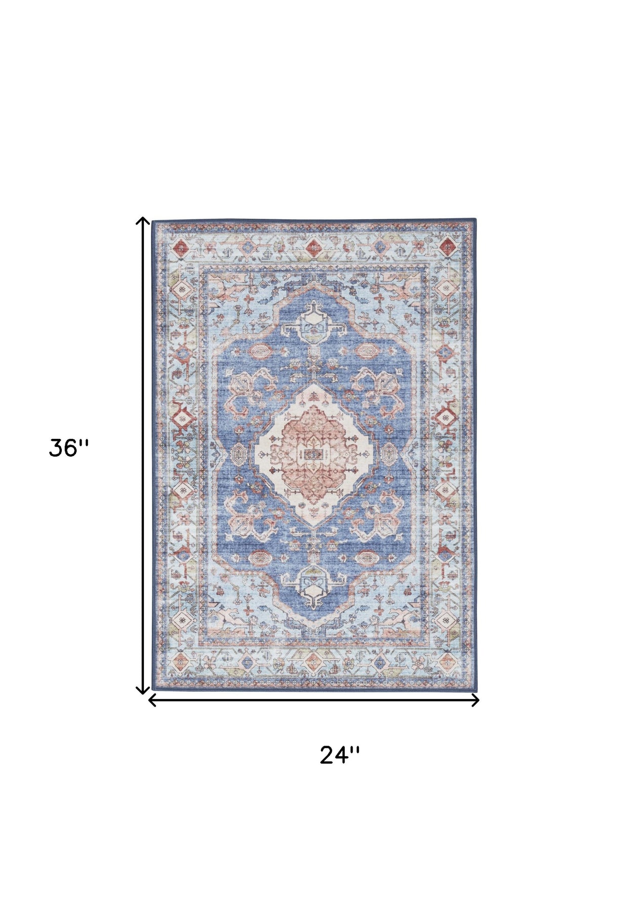 This 2-foot x 3-foot ivory red and blue oriental distressed non skid area rug, is a great way to add warmth to a room. Ideal for spaces with kids and pets, this rug is stain resistant to help repel dirt and spilled liquids. Built to last, this rug crafted from polyester fibers is known for its durability and long lasting appeal. Rugs are a great way to showcase your style, hide imperfections, warm your home and reduce noise. This smaller sized, rustic styled rug is just what you need for your walkway, bedside, in front of door, cabinet, refrigerator, or chair. 24-inch h x 36-inch w x 0.25-inch d