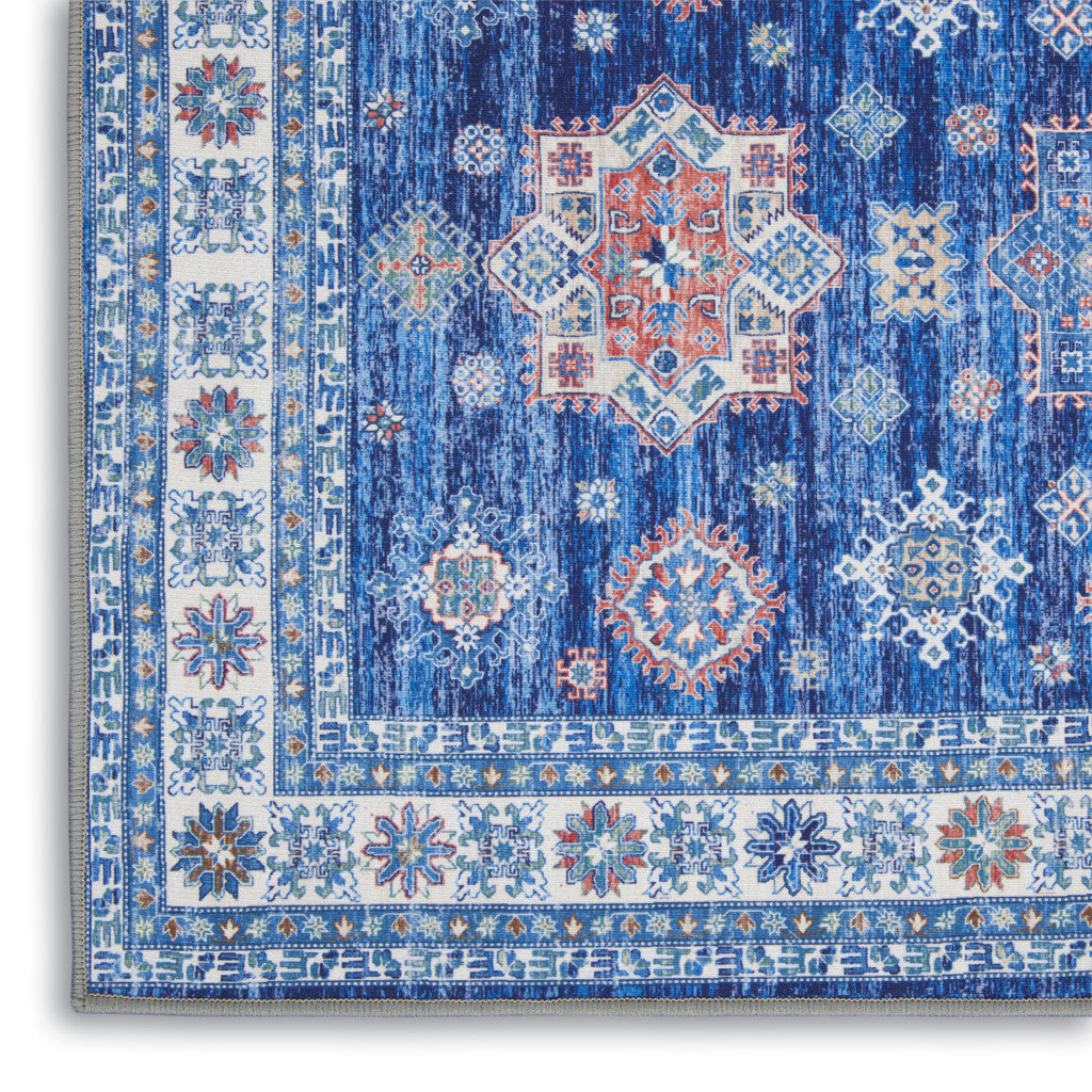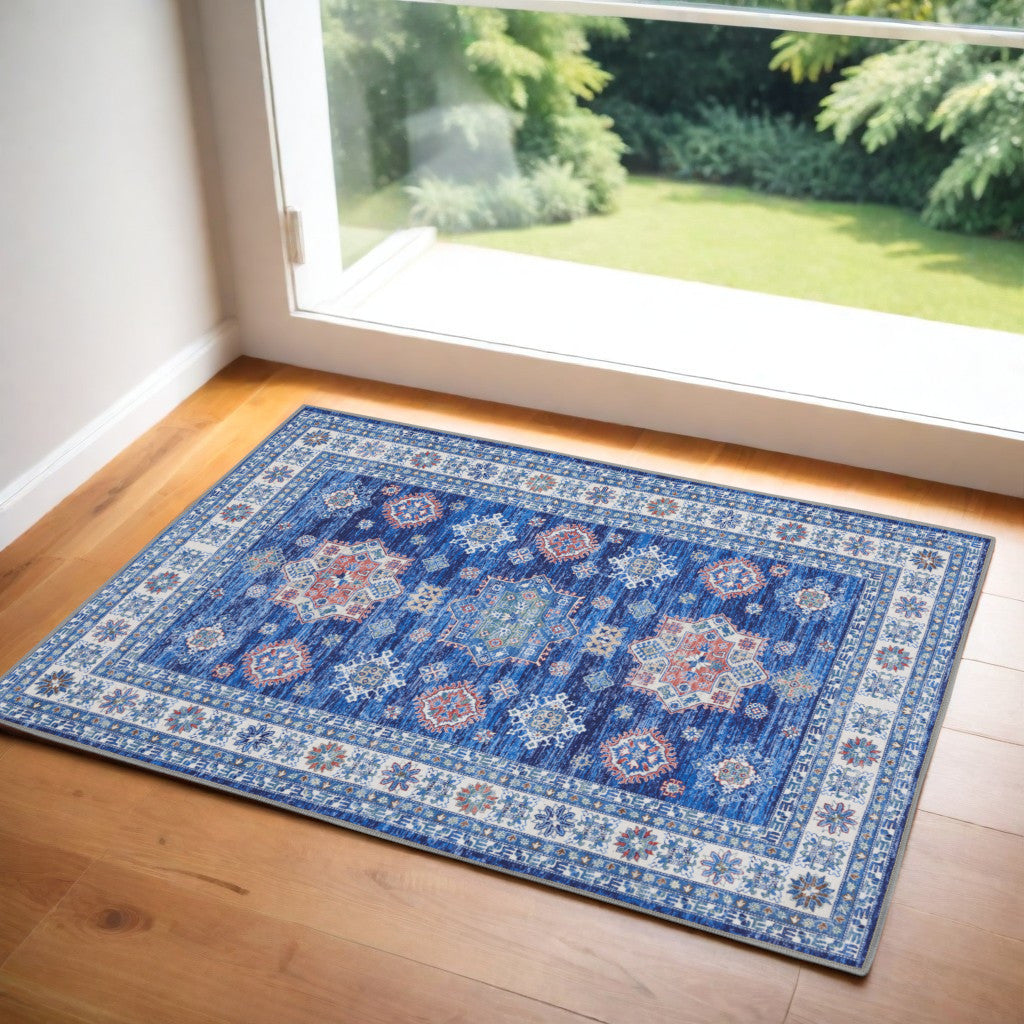 This 2-foot x 3-foot ivory and blue oriental distressed non skid area rug, is a great way to add warmth to a room. Ideal for spaces with kids and pets, this rug is stain resistant to help repel dirt and spilled liquids. Built to last, this rug crafted from polyester fibers is known for its durability and long lasting appeal. Rugs are a great way to showcase your style, hide imperfections, warm your home and reduce noise. This smaller sized, rustic styled rug is just what you need for your walkway, bedside, in front of door, cabinet, refrigerator, or chair. 24-inch h x 36-inch w x 0.25-inch d