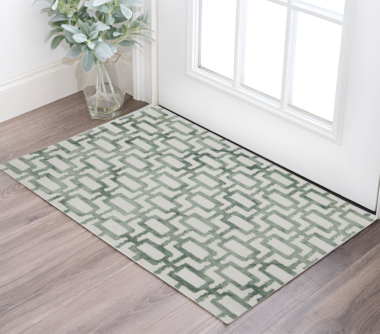 Add some artistry to your room with this 2' x 3' ivory and green wool geometric tufted handmade area rug. This rectangle shaped rug features a geometric design in ivory and green to give it visual interest. A classic shape marries with good looking design for your space Place this area rug against a hardwood or tile floor and it will enliven your living space with style and sophistication. 0.23" H x 24" W x 36" D
