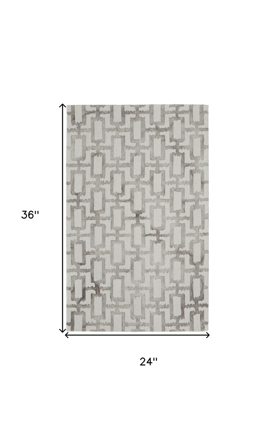 This 2' x 3' ivory and taupe wool geometric tufted handmade area rug, is a great way to add warmth to a room. This rectangle shaped rug features a geometric design in ivory and taupe to give it visual interest. A classic shape marries with good looking design for your space Area Rugs help to give warmth and sense of home to your space. 0.23" H x 24" W x 36" D