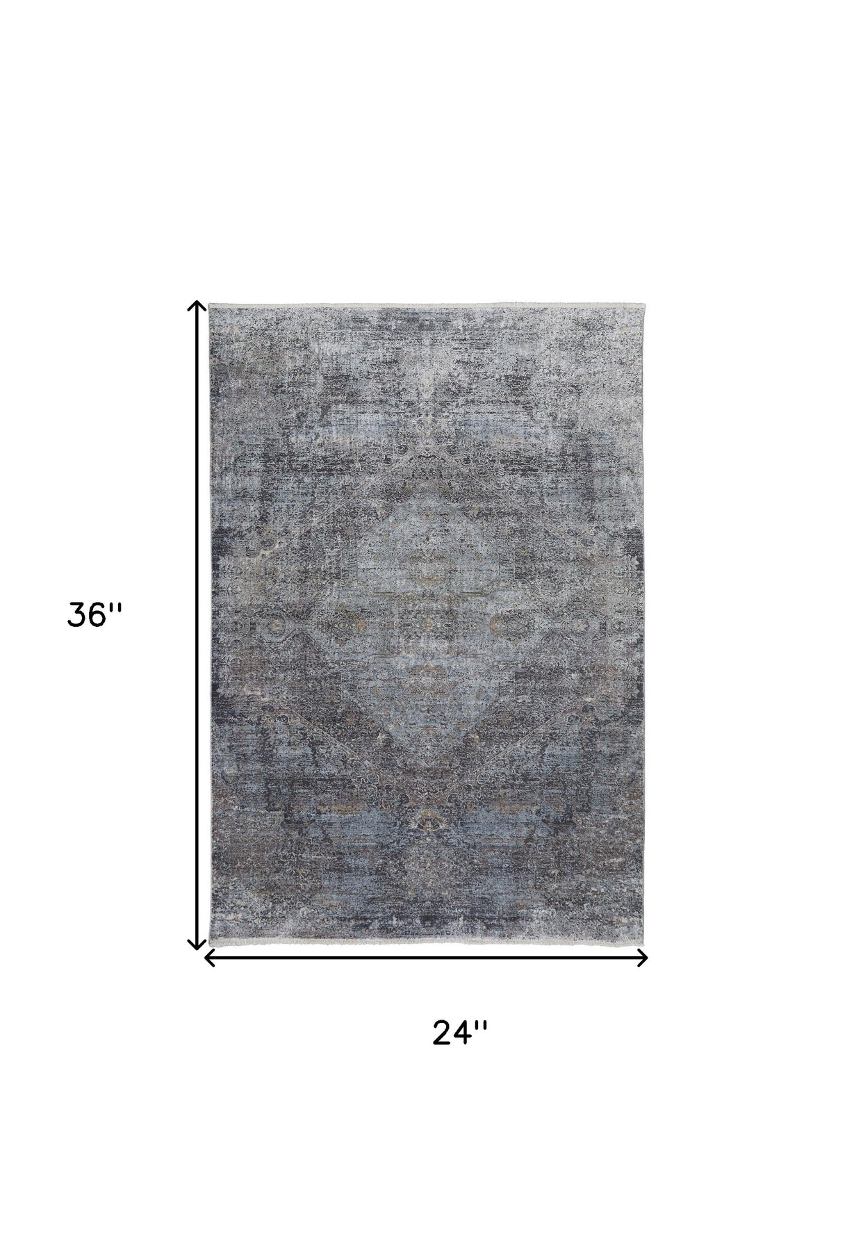 This 2-foot x 3-foot gray abstract distressed area rug, is a great way to add warmth to a room. Rugs are a great way to showcase your style, hide imperfections, warm your home and reduce noise. This smaller sized, casual styled rug is just what you need for your walkway, bedside, in front of door, cabinet, refrigerator, or chair. 24-inch h x 36-inch w x 0.22-inch d.