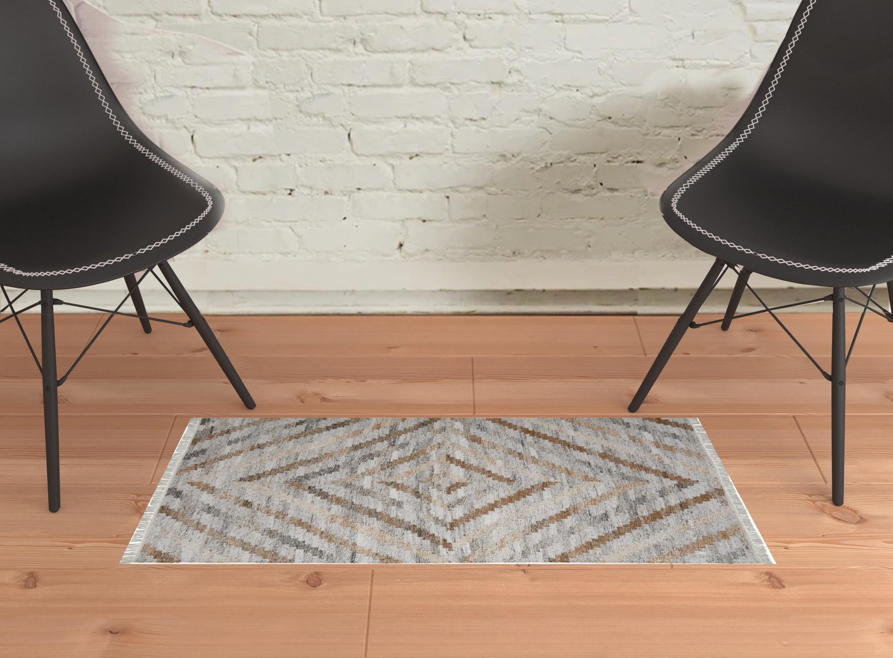This 2' x 3' ivory gray and tan geometric hand woven stain resistant area rug with fringe, is a great way to add warmth to a room. This rectangle shaped rug features a geometric design in ivory gray and tan to give it visual interest. A classic shape marries with good looking design for your space Ideal for spaces with kids and pets, this rug is stain resistant to help repel stains and spilled liquids. Tassel ends bring a timeless and fashionable look to your interior. Crafted by skilled artisans, this hand woven rug is genuine and unique. No two will be exactly alike. Place this area rug against a hardwood or tile floor and it will enliven your living space with style and sophistication. 0.2" H x 24" W x 36" D