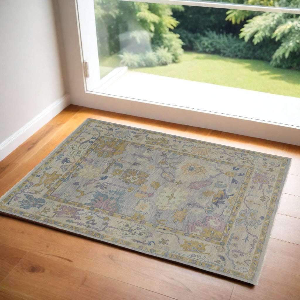 This 2-foot x 3-foot purple gray and gold wool oriental hand knotted area rug with fringe, is a great way to add warmth to a room. This rectangle shaped rug features a oriental design in purple gray and gold to give it visual interest. A classic shape marries with good looking design for your space ideal for spaces with kids and pets, this rug is stain resistant to help repel stains and spilled liquids. Tassel ends bring a timeless and fashionable look to your interior. Crafted by skilled artisans, this hand knotted rug is genuine and unique. No two will be exactly alike. 24-inch H x 36-inch W x 0.2-inch D
