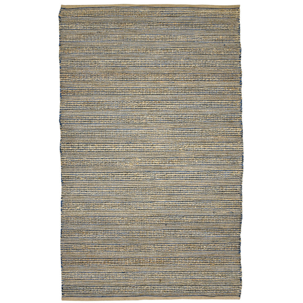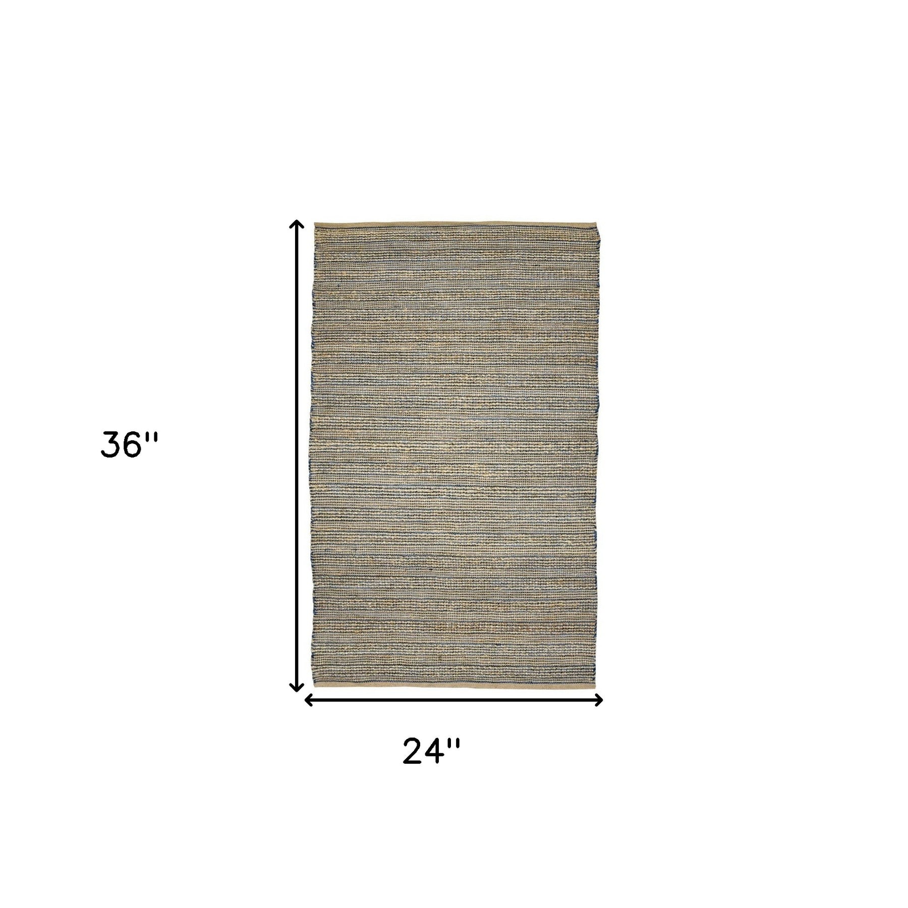 This 2-foot x 3-foot blue and beige jute striped flatweave handmade area rug, is a great way to add warmth to a room. Crafted from jute fibers that give this piece premium texture, refinement, and appeal. Rugs are a great way to showcase your style, hide imperfections, warm your home and reduce noise. This smaller sized, lodge styled rug is just what you need for your walkway, bedside, in front of door, cabinet, refrigerator, or chair. 24-inch h x 36-inch w x 0.2-inch d.