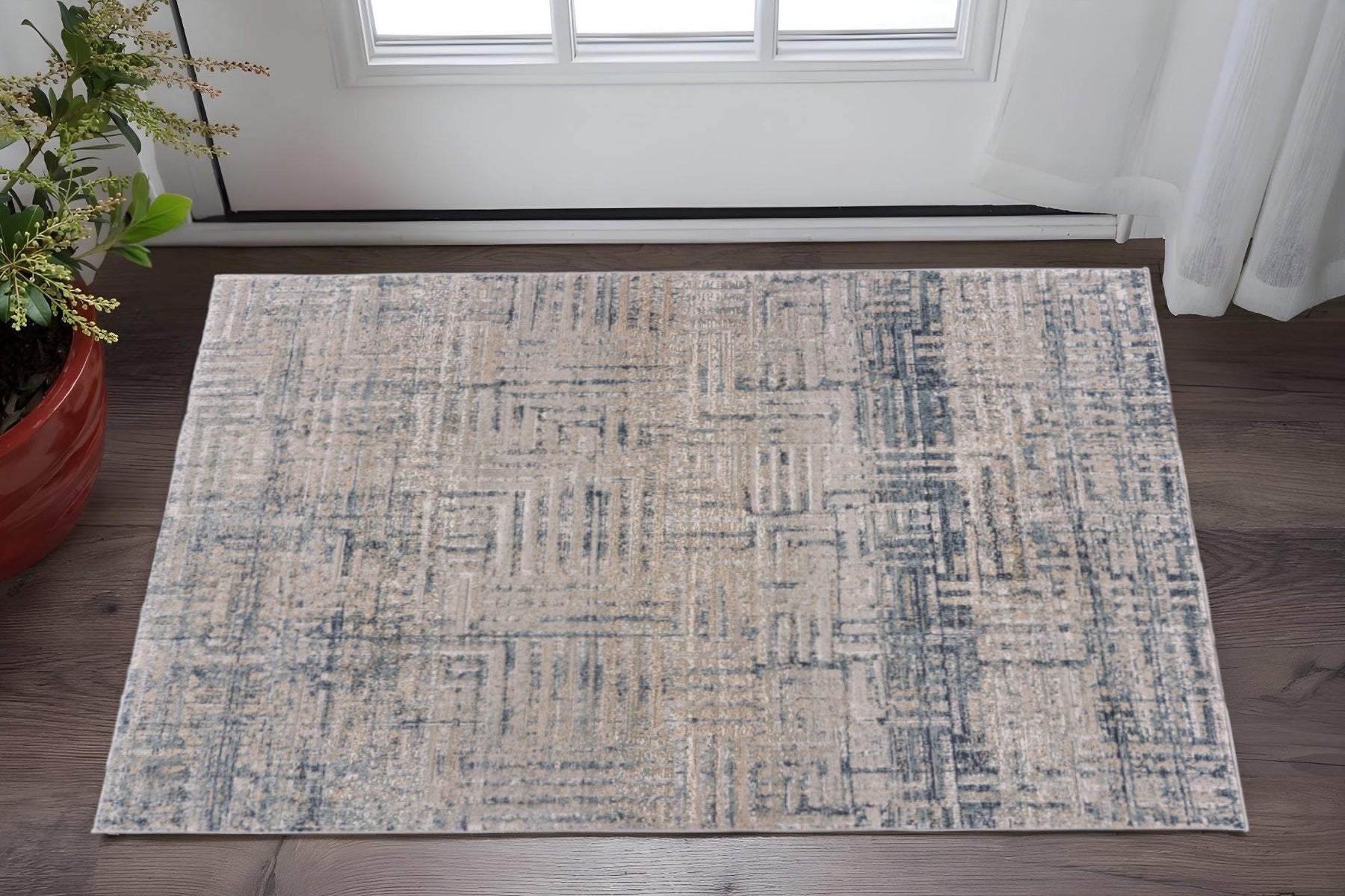 This 2' x 3' cream blue and ivory geometric distressed stain resistant area rug, is a great way to add warmth to a room. This rectangle shaped rug features a geometric design in cream blue and ivory to give it visual interest. A classic shape marries with good looking design for your space Made in Turkey, this rug offers high quality combined with good looking designer sensibilities. Ideal for spaces with kids and pets, this rug is stain resistant to help repel stains and spilled liquids. Place this area rug against a hardwood or tile floor and it will enliven your living space with style and sophistication. 0.2" H x 36" W x 22" D