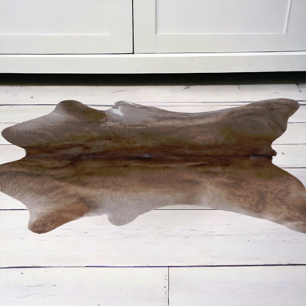 This approx 2-foot x 3-foot taupe cowhide hand knotted area rug, is a great way to add warmth and designer chic to a room. Ideal for high traffic areas, this rug is naturally stain resistant and does not shed. Hand-crafted by skilled artisans, this genuine hide rug is completely unique. No two will be exactly alike. Place this area rug against a hardwood or tile floor and it will enliven your living space with chic style and sophistication. 24-inch H x 36-inch W x 0.1-inch D