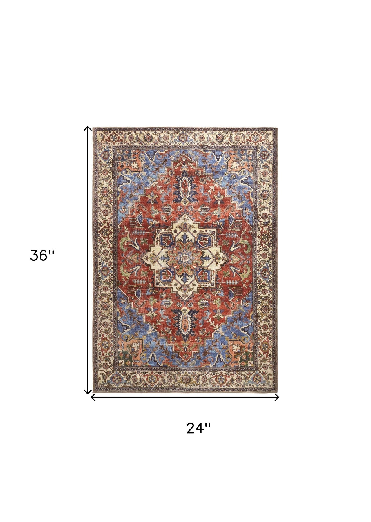 Add some artistry to your room with this 2' x 3' blue red and ivory floral area rug. This rectangle shaped rug features a floral design in blue red and ivory to give it visual interest. A classic shape marries with good looking design for your space Made in Turkey, this rug offers high quality combined with good looking designer sensibilities. Place this area rug against a hardwood or tile floor and it will enliven your living space with style and sophistication. 0.08" H x 24" W x 36" D