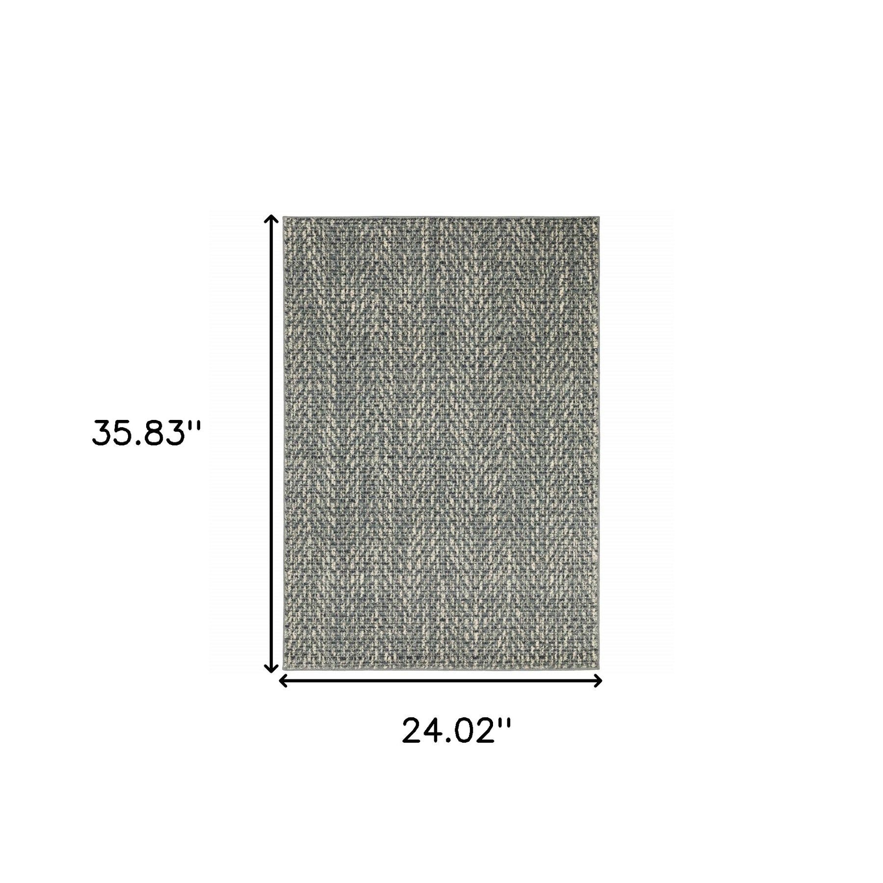 This 2' x 3' blue ivory grey and light blue geometric power loom stain resistant area rug, is a great way to add warmth to a room. This rectangle shaped rug features a geometric design in blue ivory grey and light blue to give it visual interest. A classic shape marries with good looking design for your space Ideal for spaces with kids and pets, this rug is stain resistant to help repel stains and spilled liquids. Place this area rug against a hardwood or tile floor and it will enliven your living space with style and sophistication. 0.79" H x 24.02" W x 35.83" D
