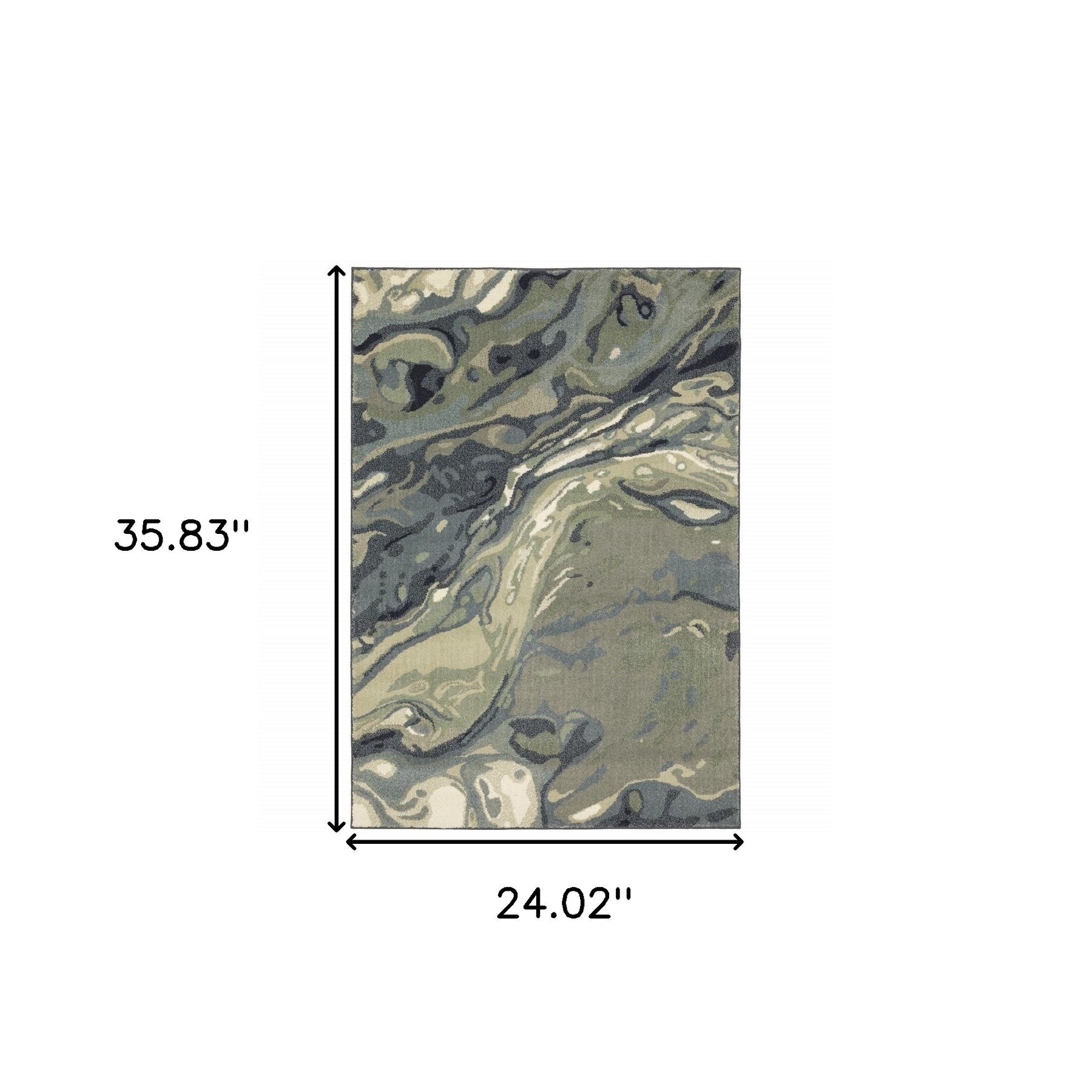 This 2' x 3' blue sage green grey beige and light blue abstract power loom stain resistant area rug, is a great way to add warmth to a room. This rectangle shaped rug features a abstract design in blue sage green grey beige and light blue to give it visual interest. A classic shape marries with good looking design for your space Ideal for spaces with kids and pets, this rug is stain resistant to help repel stains and spilled liquids. Area Rugs help to give warmth and sense of home to your space. 0.79" H x 24.02" W x 35.83" D