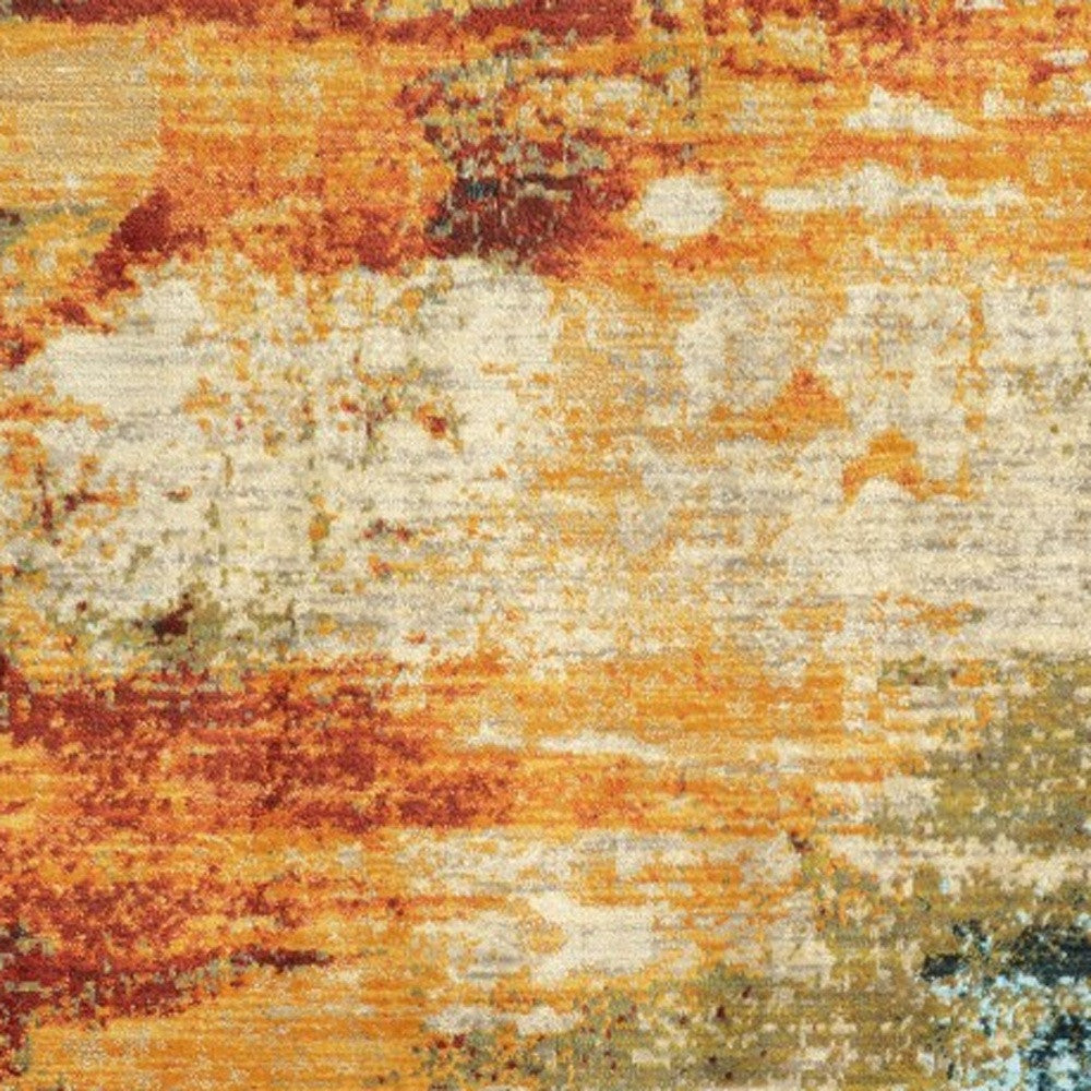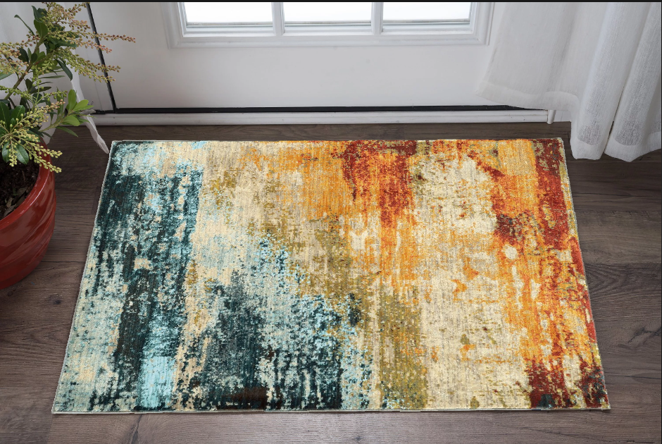 Drawing inspiration from the energetic hues of the earthy elements, this charismatic Blue and Red Distressed Scatter Rug will add a rich artistic appeal to any contemporary arrangement. Showcasing distressed strokes with an incredible fusion of saturated colors in midnight teal, brick red, and saffron gold, resembling the beauty of fire and water. Made in the United States with machine-woven nylon and polypropylene mix for enhanced durability, strength, and resistance from stains and spills, making it an ideal piece for high-traffic indoor areas. To add to its opulence, the low pile construction ensures a soft and smooth surface texture under the feet. The cool and warm-toned color palette of this scatter rug will add character to any modern ensemble. 0.39Ó x 22.05Ó x 35.83Ó