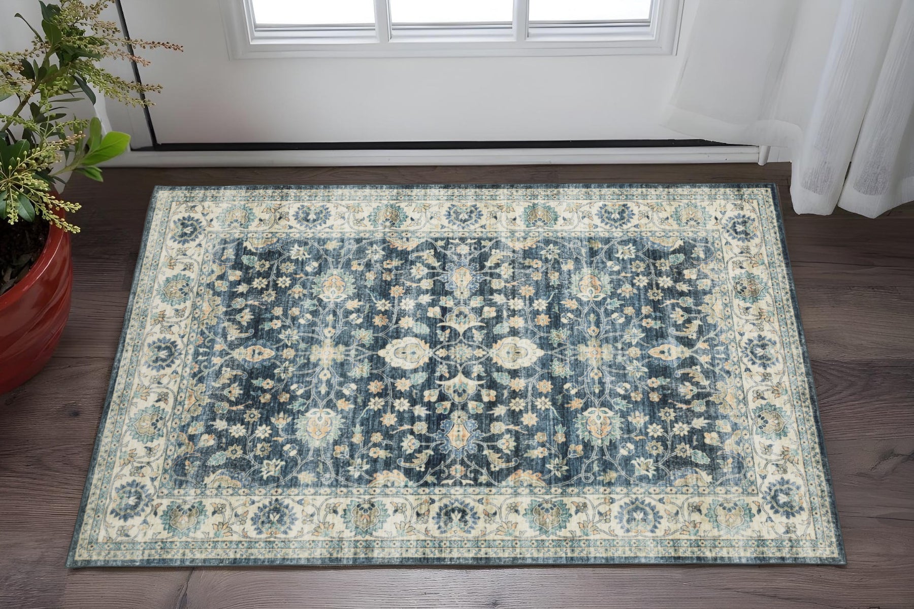 This 2-foot x 3-foot blue oriental non skid area rug, is a great way to add warmth to a room. This rectangle shaped rug features a oriental design in blue to give it visual interest. A classic shape marries with good looking design for your space ideal for spaces with kids and pets, this rug is stain resistant to help repel stains and spilled liquids. Area rugs help to give warmth and sense of home to your space. 24.02-inch H x 35.83-inch W x 0.12-inch D