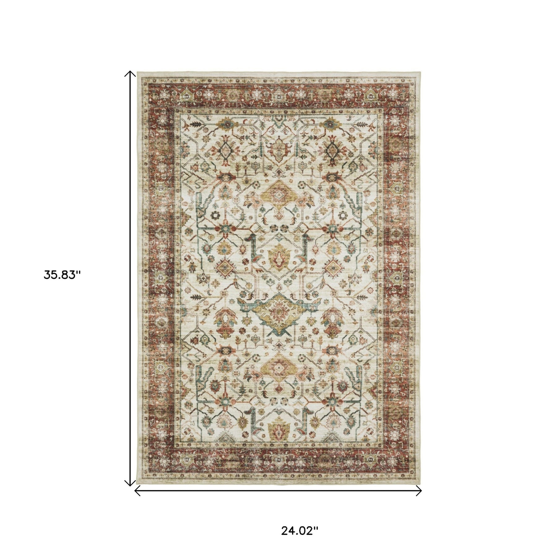Add some artistry to your room with this 2-foot x 3-foot ivory oriental non skid area rug. This rectangle shaped rug features a oriental design in ivory to give it visual interest. A classic shape marries with good looking design for your space the coloring of this rug adds a delightfully neutral tone to your home and will easily match with most any decor. Ideal for spaces with kids and pets, this rug is stain resistant to help repel stains and spilled liquids. Area rugs help to give warmth and sense of home to your space. 24.02-inch H x 35.83-inch W x 0.12-inch D