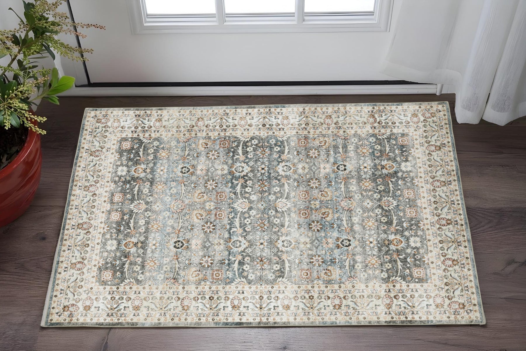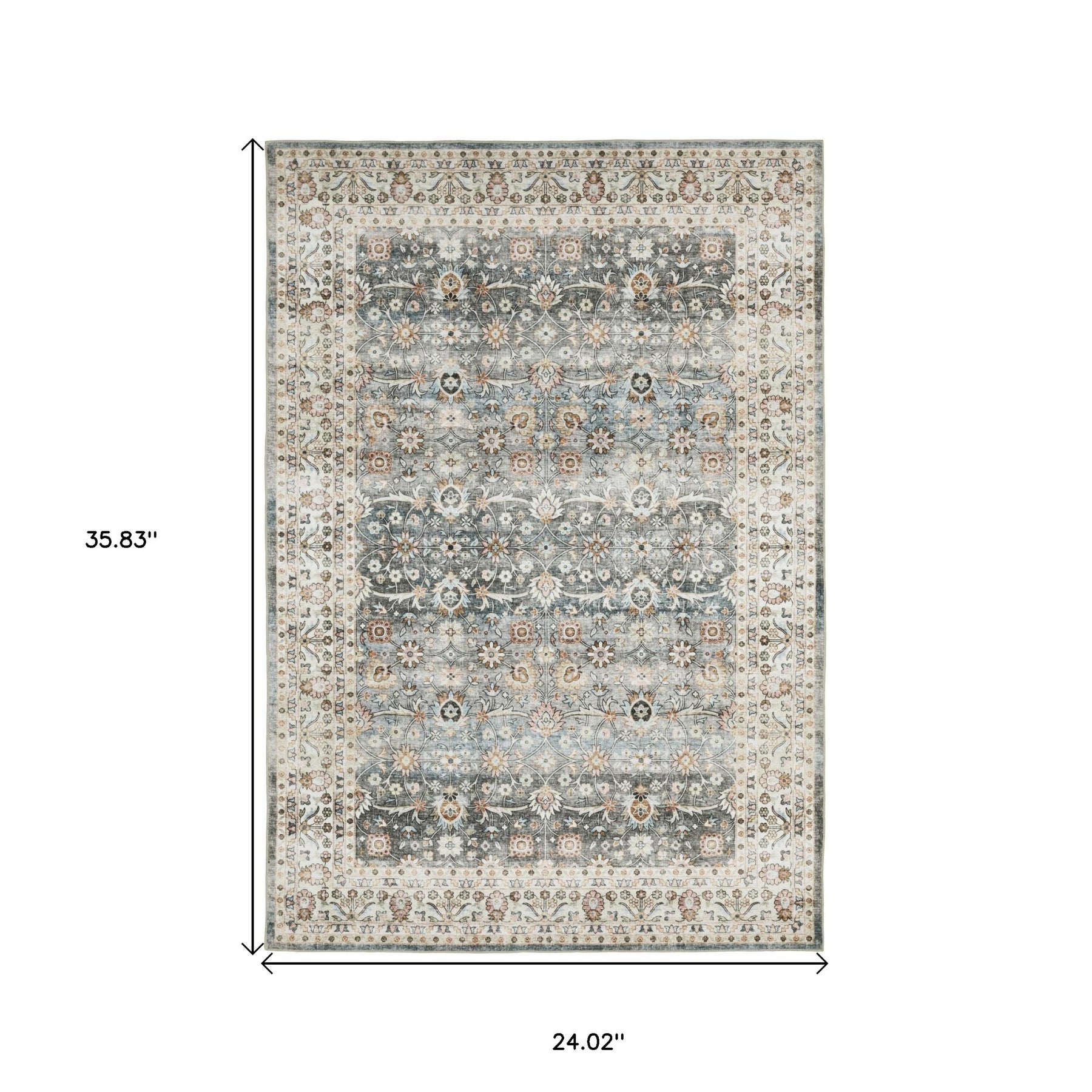Add great coloration and comfortable texture to your space with this 2-foot x 3-foot gray oriental non skid area rug. This rectangle shaped rug features a oriental design in gray to give it visual interest. A classic shape marries with good looking design for your space the coloring of this rug adds a delightfully neutral tone to your home and will easily match with most any decor. Ideal for spaces with kids and pets, this rug is stain resistant to help repel stains and spilled liquids. Area rugs help to give warmth and sense of home to your space. 24.02-inch H x 35.83-inch W x 0.12-inch D