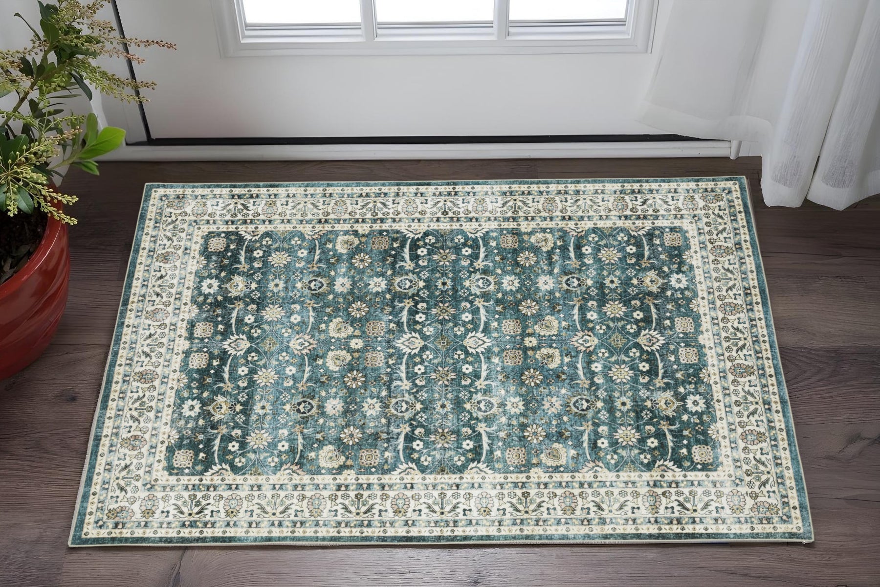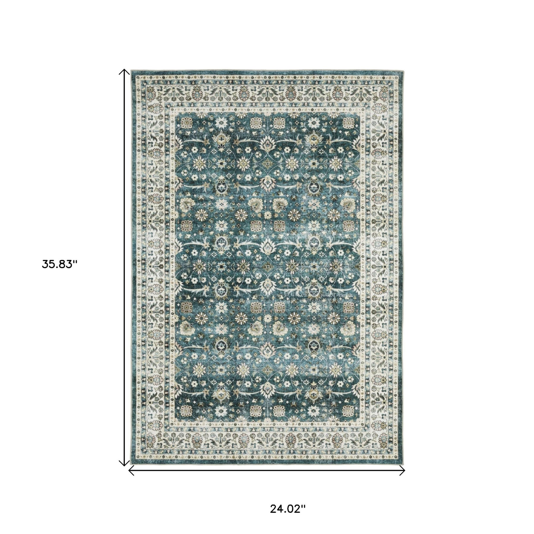This 2-foot x 3-foot teal oriental non skid area rug, is a great way to add warmth to a room. This rectangle shaped rug features a oriental design in teal to give it visual interest. A classic shape marries with good looking design for your space ideal for spaces with kids and pets, this rug is stain resistant to help repel stains and spilled liquids. Area rugs help to give warmth and sense of home to your space. 24.02-inch H x 35.83-inch W x 0.12-inch D