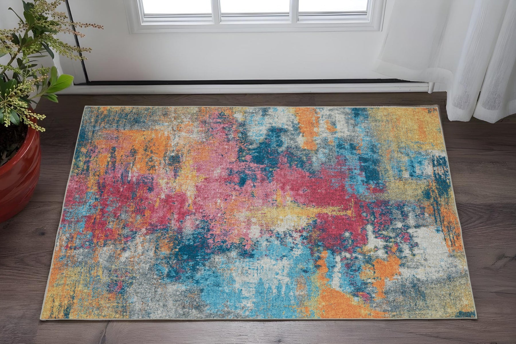 Add great coloration and comfortable texture to your space with this 2-foot x 3-foot blue abstract non skid area rug. This rectangle shaped rug features a abstract design in blue to give it visual interest. A classic shape marries with good looking design for your space ideal for spaces with kids and pets, this rug is stain resistant to help repel stains and spilled liquids. Place this area rug against a hardwood or tile floor and it will enliven your living space with style and sophistication. 24.02-inch H x 35.83-inch W x 0.12-inch D