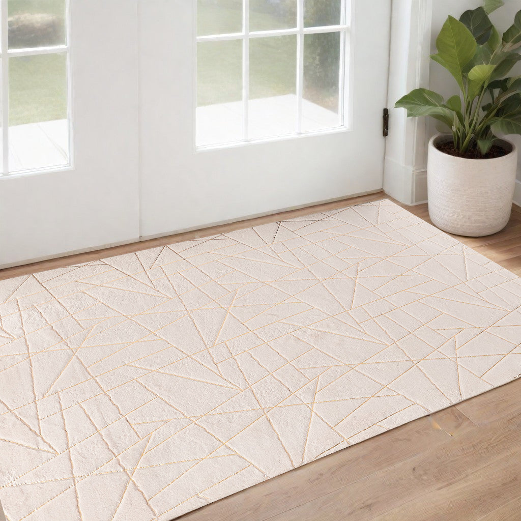 Set an inviting tone in your space with this 2-foot x 3-foot beige and gold faux fur abstract shag non skid area rug. This rectangle shaped rug features a abstract design in beige and gold to give it visual interest. A classic shape marries with good looking design for your space the retro shag construction of this luxurious rug will provide a soft and comfortable barrier to color tile and hardwood floors. Place this area rug against a hardwood or tile floor and it will enliven your living space with style and sophistication. 24-inch H x 35.5-inch W x 1-inch D
