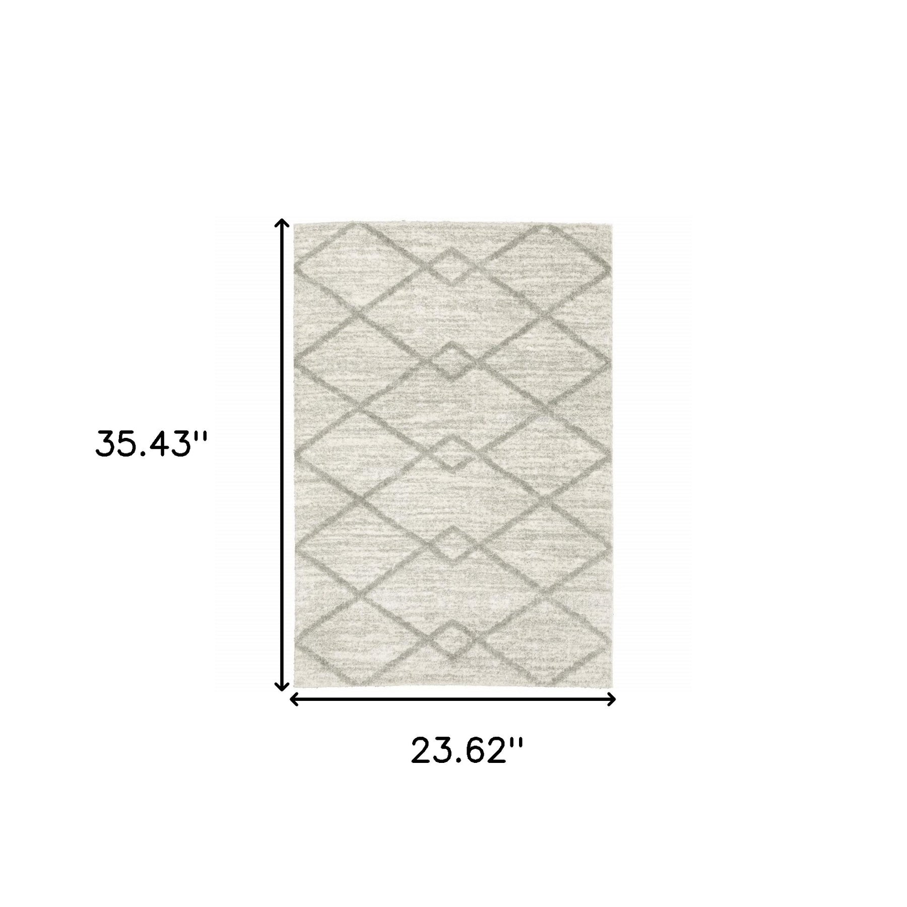 Add some artistry to your room with this 2' x 3' ivory and grey geometric shag power loom stain resistant area rug. This rectangle shaped rug features a geometric design in ivory and grey to give it visual interest. A classic shape marries with good looking design for your space Ideal for spaces with kids and pets, this rug is stain resistant to help repel stains and spilled liquids. The retro shag construction of this luxurious rug will provide a soft and comfortable barrier to color tile and hardwood floors. Area Rugs help to give warmth and sense of home to your space. 0.98" H x 23.62" W x 35.43" D