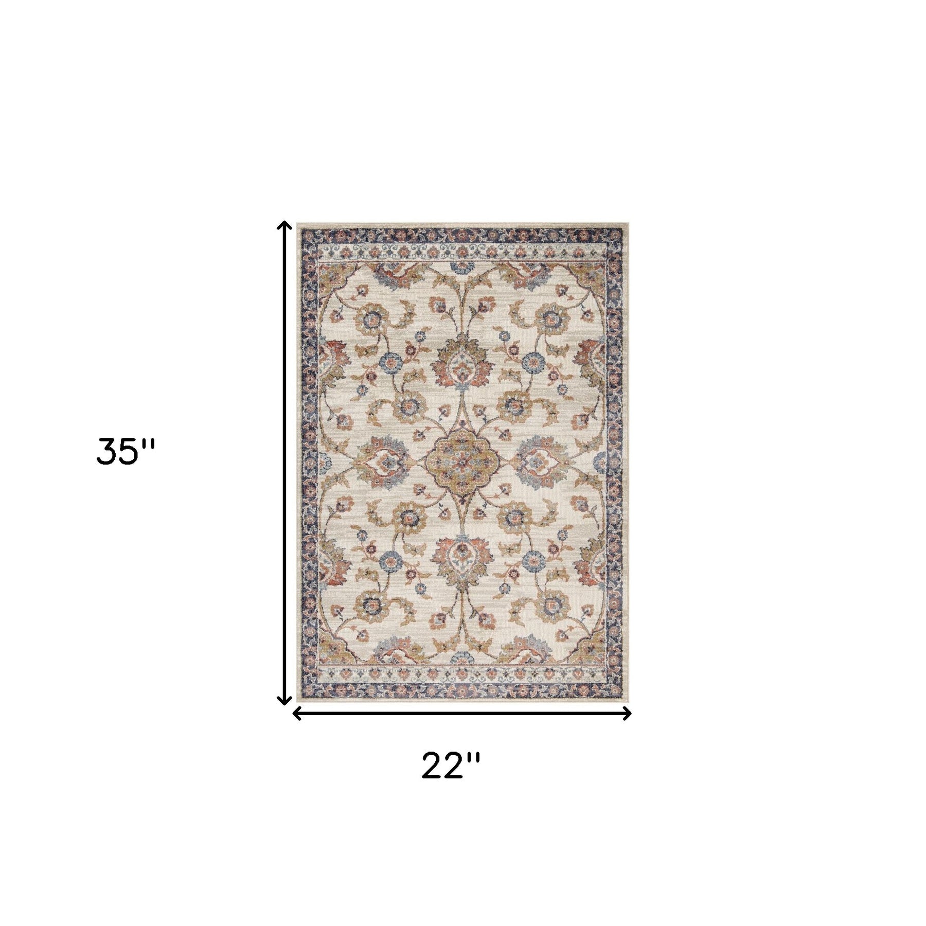 Add great coloration and comfortable texture to your space with this 2-foot x 3-foot ivory tan and blue floral area rug. Ideal for spaces with kids and pets, this rug is stain resistant to help repel dirt and spilled liquids. Built to last, this rug crafted from polypropylene fibers is known for its durability and long lasting appeal. Rugs are a great way to showcase your style, hide imperfections, warm your home and reduce noise. This smaller sized, contemporary styled rug is just what you need for your walkway, bedside, in front of door, cabinet, refrigerator, or chair. 22-inch h x 35-inch w x 0.4-inch d.