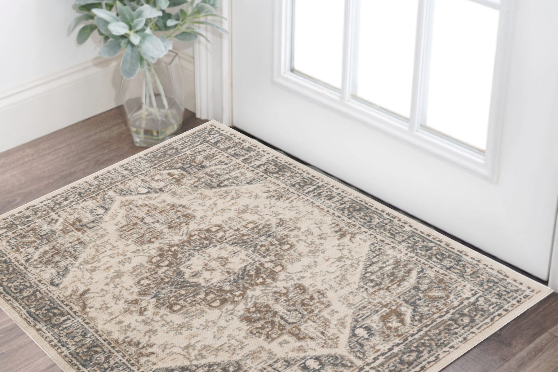 Set an inviting tone in your space with this 2-foot x 3-foot gray and light beige medallion power loom area rug. This rectangle shaped rug features a medallion design in gray and light beige to give it visual interest. A classic shape marries with good looking design for your space ideal for spaces with kids and pets, this rug is stain resistant to help repel stains and spilled liquids. Place this area rug against a hardwood or tile floor and it will enliven your living space with style and sophistication. 22-inch H x 35-inch W x 0.32-inch D