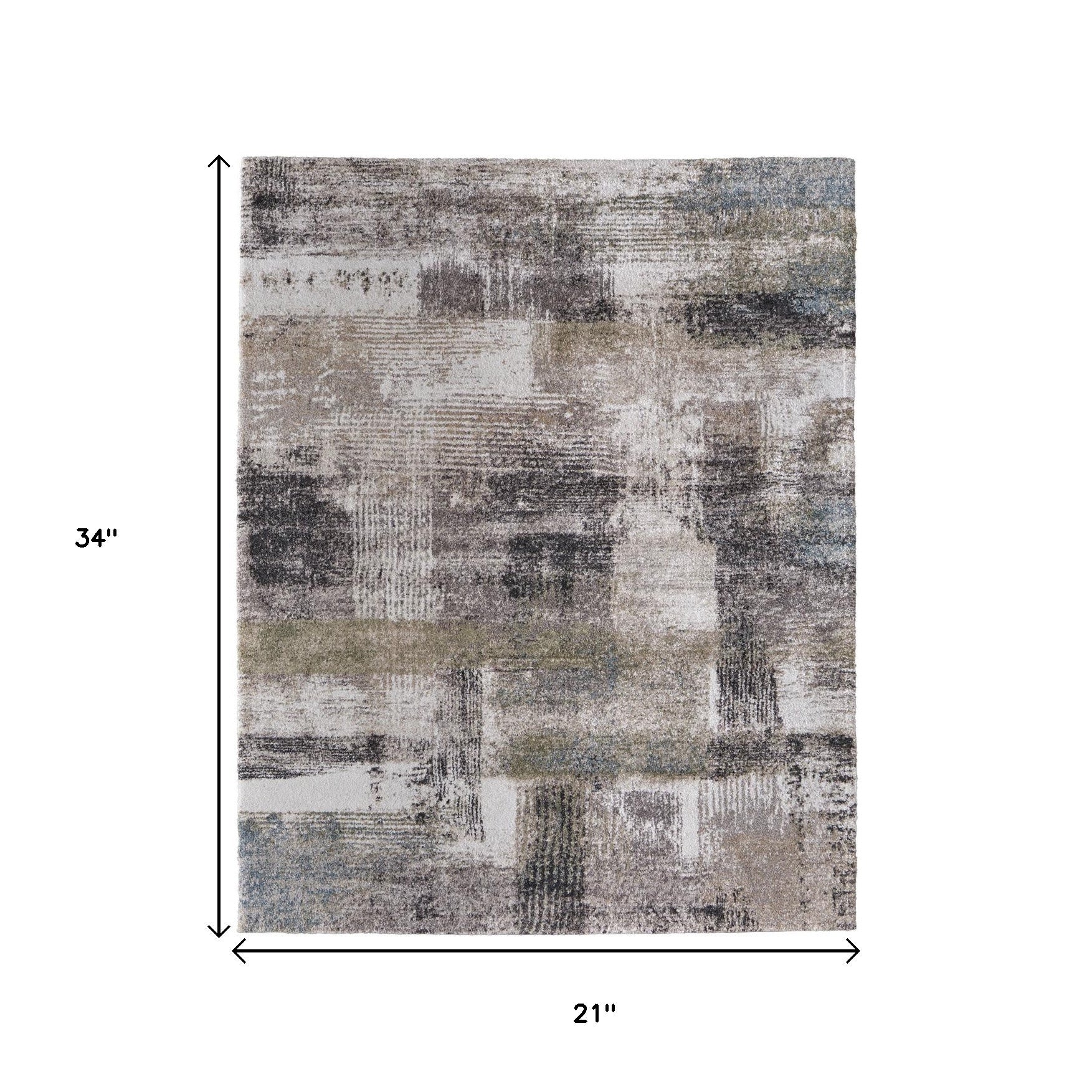This 2-foot x 3-foot gray taupe and ivory abstract distressed area rug, is a great way to add warmth to a room. Ideal for spaces with kids and pets, this rug is stain resistant to help repel dirt and spilled liquids. Built to last, this rug crafted from polypropylene blend fibers is known for its durability and long lasting appeal. Rugs are a great way to showcase your style, hide imperfections, warm your home and reduce noise. This smaller sized, industrial styled rug is just what you need for your walkway, bedside, in front of door, cabinet, refrigerator, or chair. 21-inch h x 34-inch w x 1-inch d.